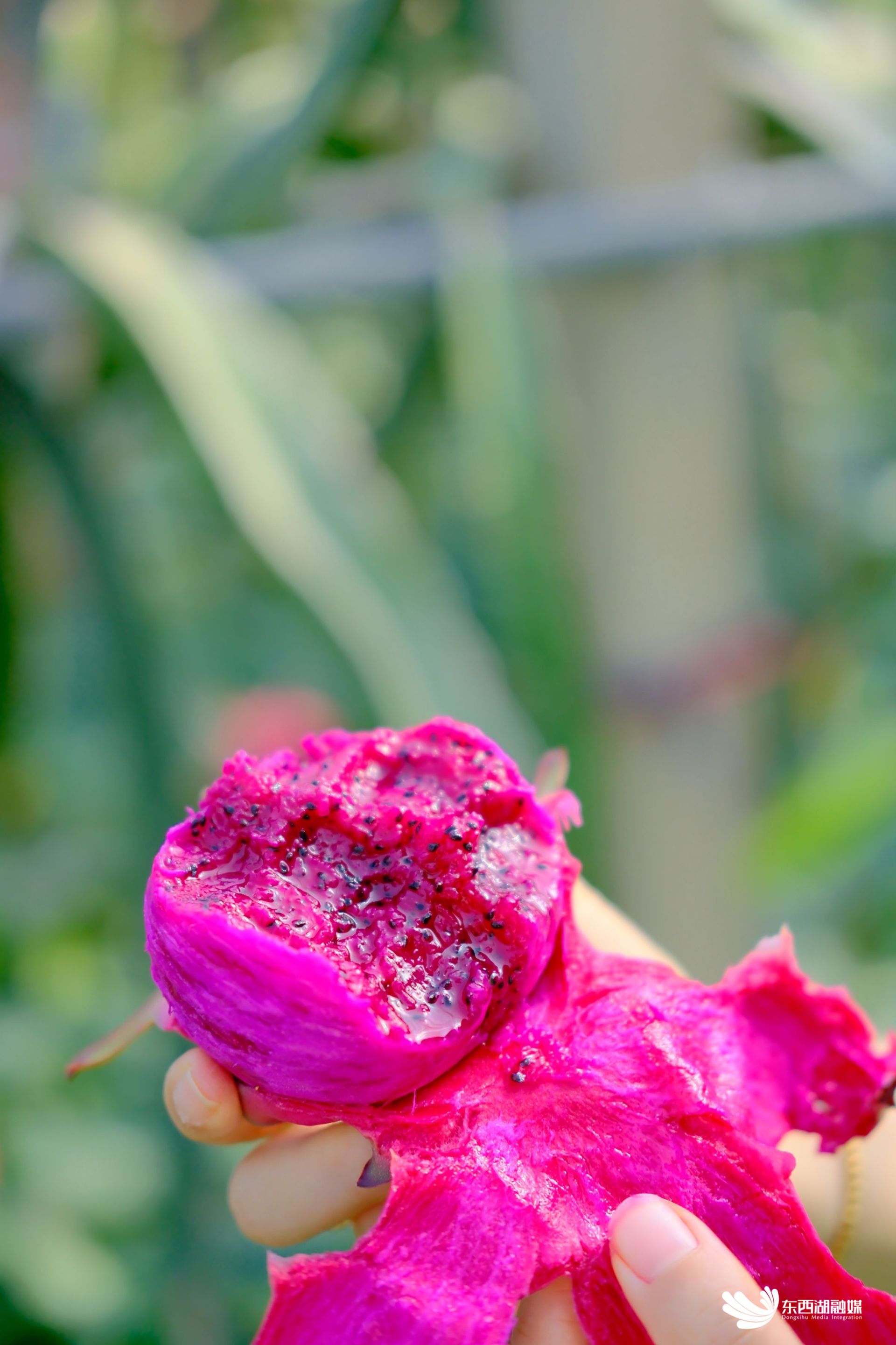“我这是红心火龙果,特别甜!”果园主人贺小花摘下一颗火龙果,随后用刀切开,浓郁的果香顿时扑面而来,记者看到火龙果个头不大,但果肉却饱满,在阳光照耀下,红色的果肉与汁水格外诱人,吃下一口,满口香甜。