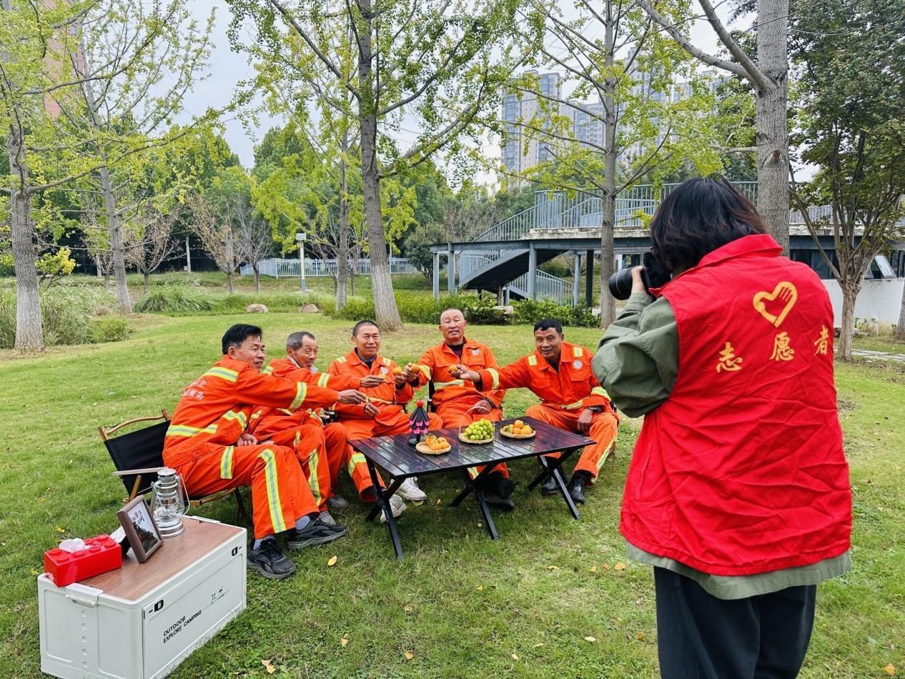 活动现场,几位环卫工人身着橙色工作服,在银杏树下与同事拍下了工作多年来的第一张正式合影。“天天一起干活,却从没这样照过相。”沈师傅看着相机预览屏里的画面,有些不好意思地笑了。