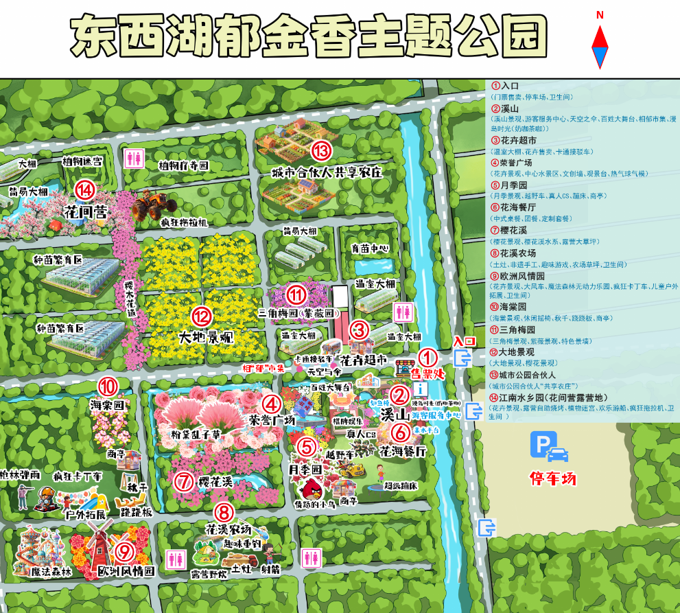 两大新园:首次开放的花溪农场和紫薇园。在这里,你可以感受到森林土灶与农场火锅的烟火气,体验手作铁盒爆米花、烤面包的香甜;还可畅玩趣味排球、羽毛球等8大户外项目,在绿意盎然的场地中,尽情释放活力。紫薇园超大“福”字树阵,融合三角梅花海,古典韵味与热烈色彩相结合,为游客带来独特的视觉享受和文化体验!
