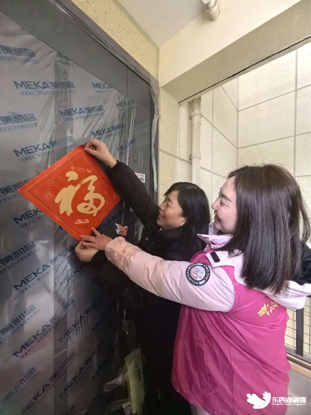 渔门径社区工作人员上门为惠景九龙湾新入住居民贴福气。