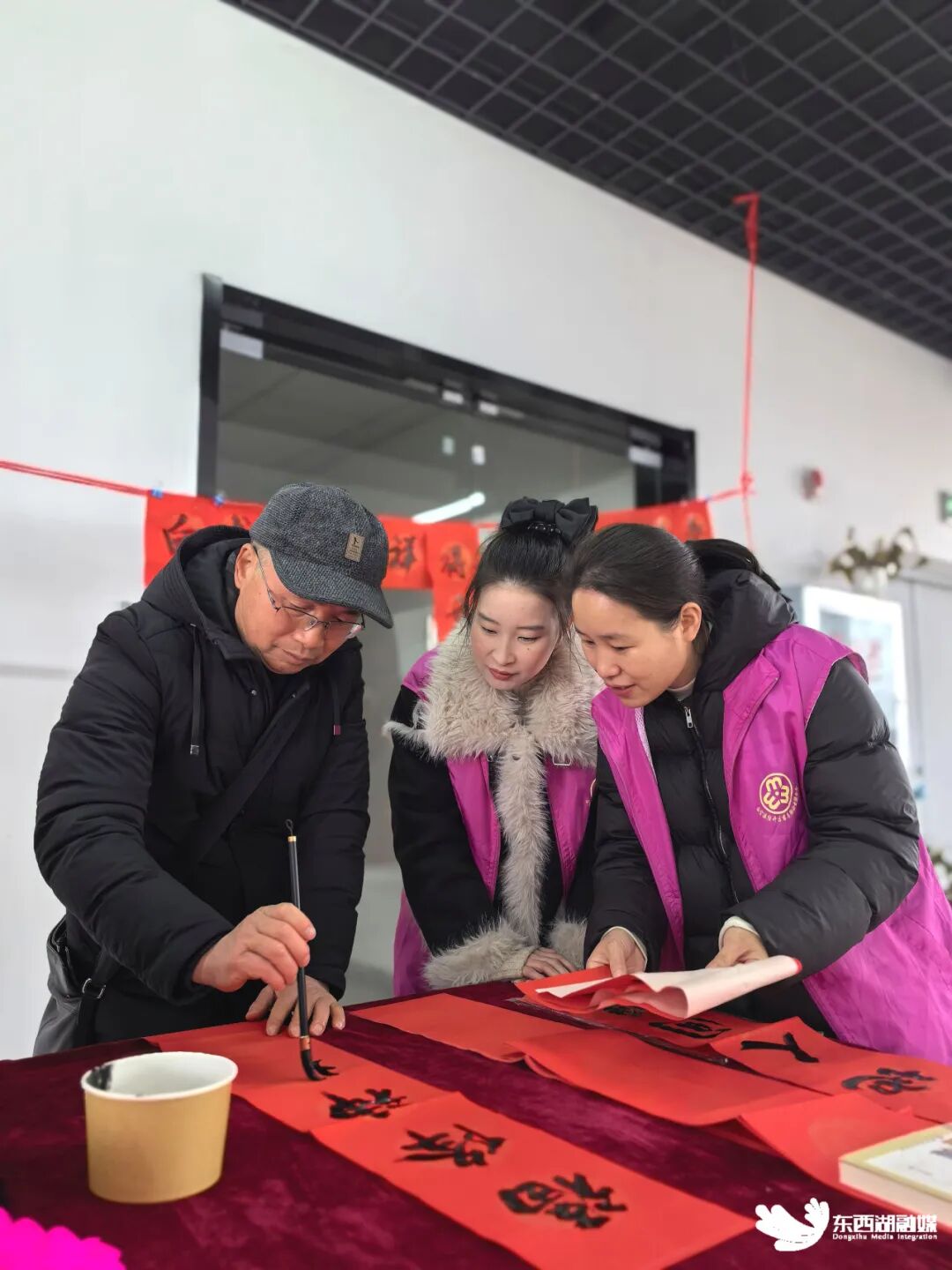 居民们领取福字,脸上洋溢着幸福的笑容。