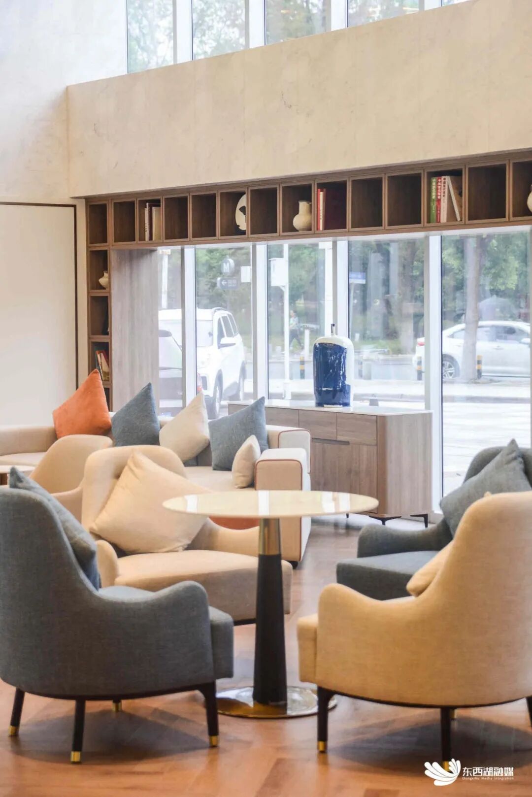 休闲区为宾客提供舒适的休息和交谈空间,长桌和椅子的布局既满足了团体宾客的需求,也考虑到了个人休息时的私密性,布艺沙发、木质家具的使用增强了自然与舒适的氛围,让宾客在繁忙的旅途中感受到家的温馨。