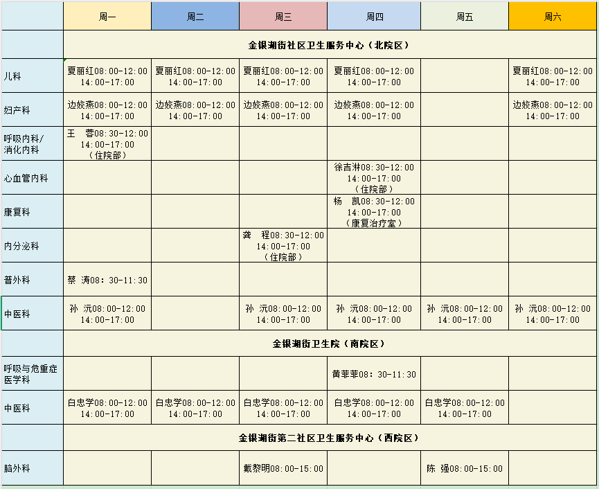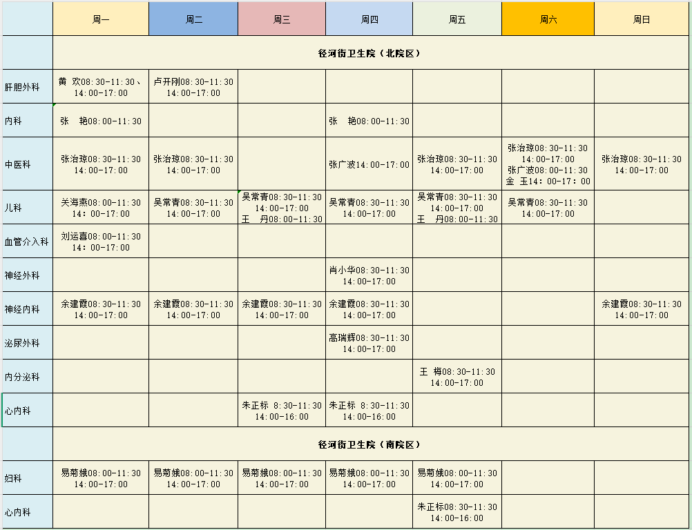 东西湖区人民医院2025年度专病排班