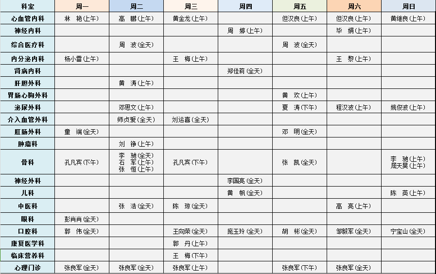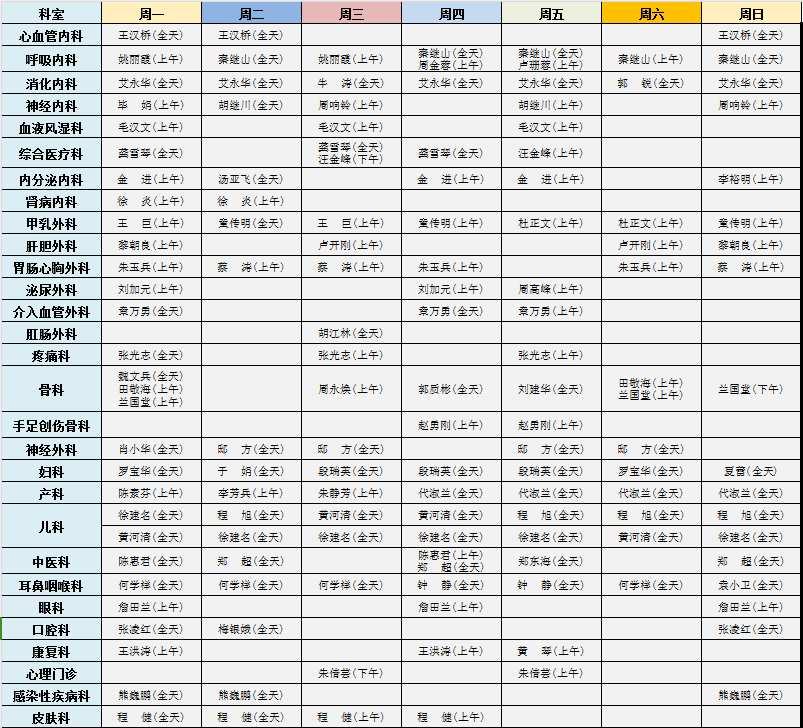 东西湖区人民医院2025年度专家排班