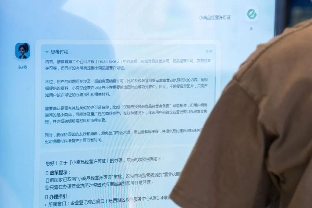 据悉,东西湖区行政审批局牵头研发的“东e政”AI智能系统,运用AI大模型技术,将分散的服务事项、政策标准、常见问题及办理窗口等,构建成行政审批与政务服务知识库,生成标准化和规范化应答话术。“东e政”系统因此化身“智能导服员”,能听懂群众的需求,解答群众的疑惑,可为企业和居民提供557项咨询服务,涉及企业开办、不动产业务办理、税务等高频政务服务事项,今年4月3日试运行以来,事项办理准确率超95%。