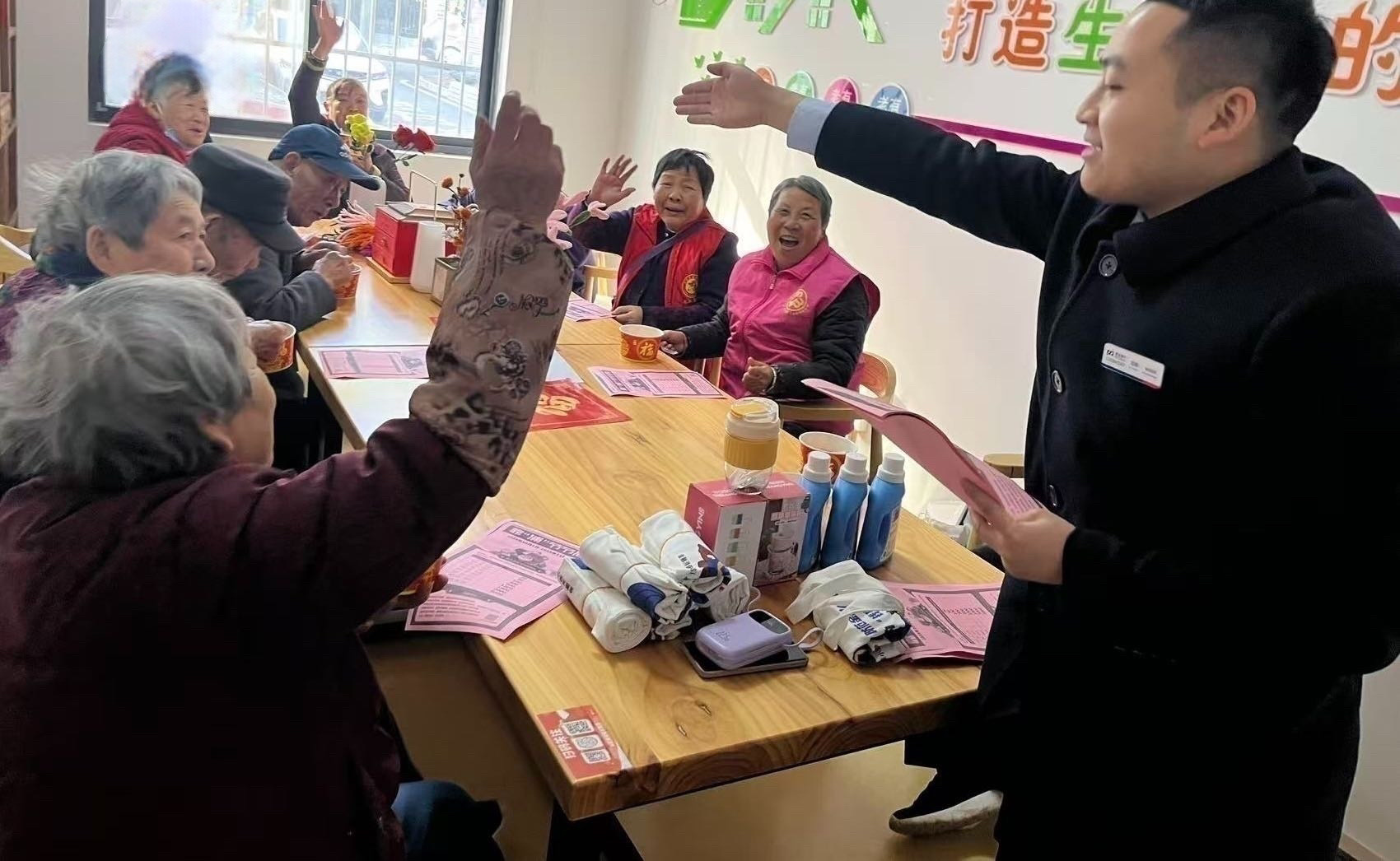 最热闹的环节当属“金融知识有奖问答”。浦发银行的工作人员结合老年人常见的金融需求,提出“银行卡密码能告诉子女以外的人吗?”“收到‘中奖退税’短信该点链接吗?”等问题,答对的居民可获得洗衣液、环保袋等实用奖品。72岁的刘大爷第一个举手:“密码肯定不能乱给!上次有人打电话说我银行卡异常,我就没信!”答对问题的他接过奖品,笑得合不拢嘴。问答中,工作人员还穿插讲解了电信诈骗的常见套路、社保卡激活流程、存款保险制度等知识,用案例提醒大家“不轻信、不透露、不转账”。“原来‘高收益理财’可能是陷阱啊,多亏今天学到了!”刚答对“理财风险”题的张阿姨说。