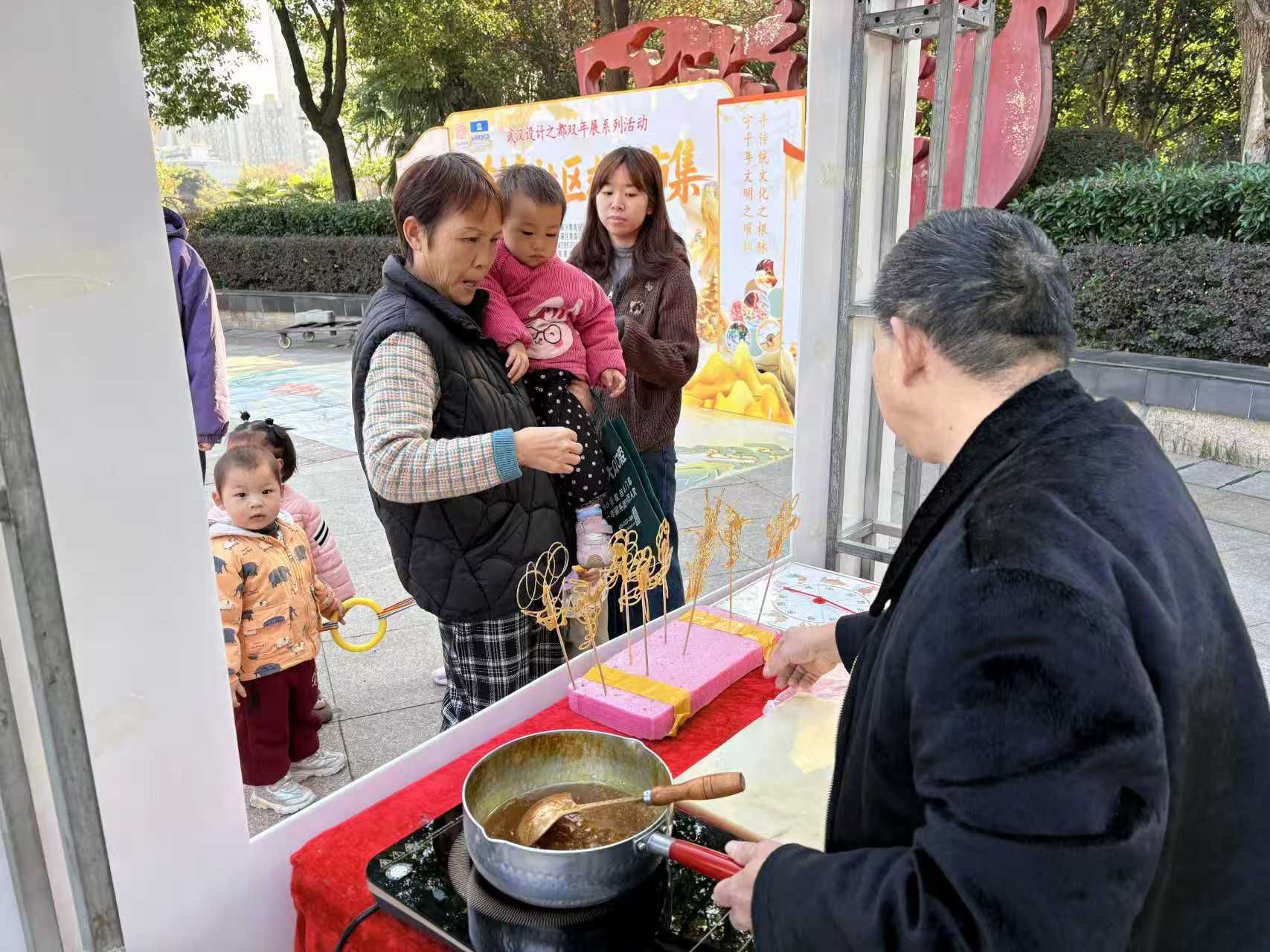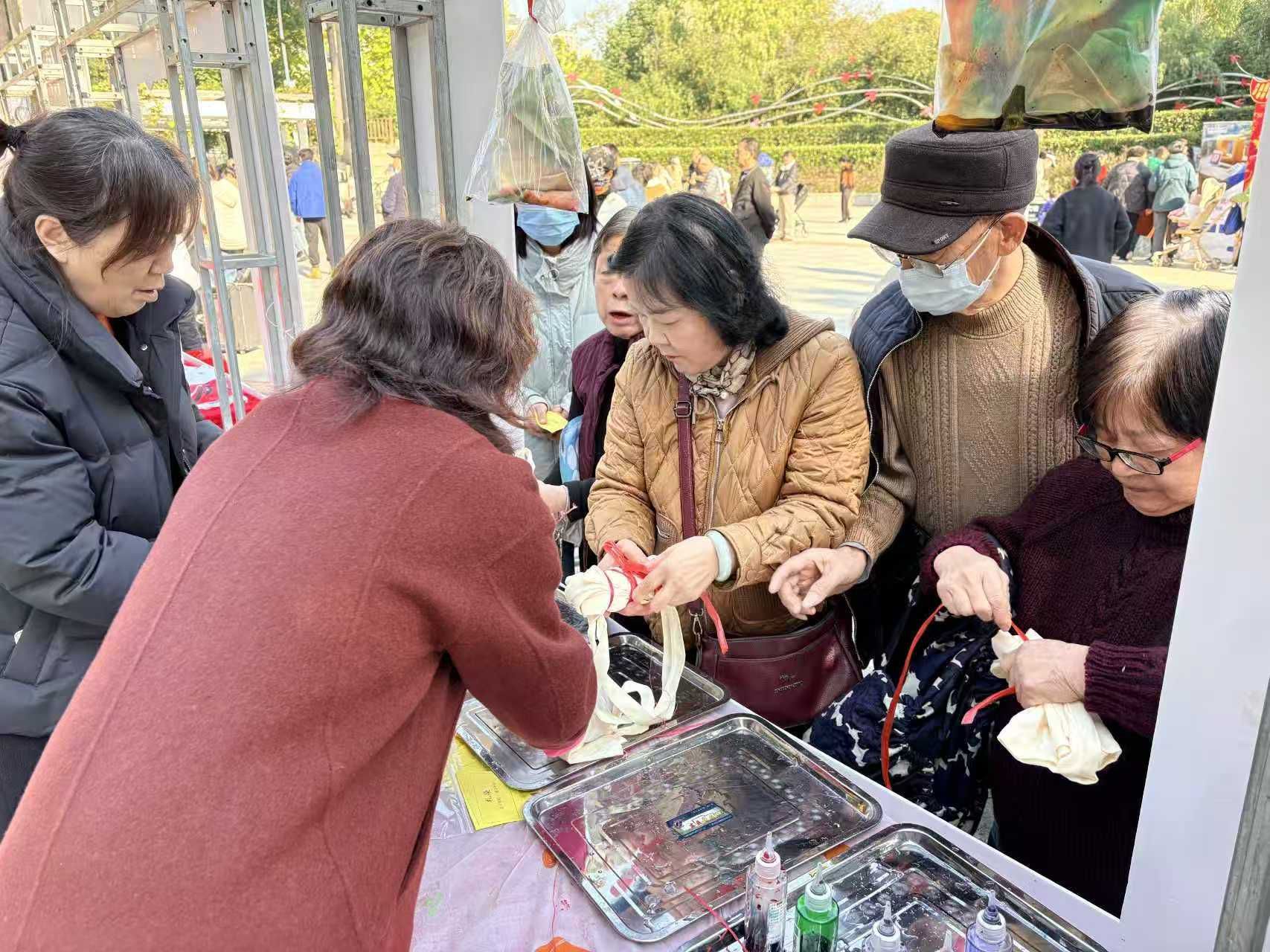 市集核心区域集结非遗漆扇、妙笔糖画、磁性剪纸、神奇水拓画、京韵脸谱、手工扎染、巧手草编、武汉面塑8个主题摊位,每个摊位均邀请专业非遗传承人坐镇,全程提供技艺讲解、现场演示与实操指导。活动紧扣“设计”主题,居民可在传承人点拨下,将现代审美与社区记忆融入传统技艺——在漆扇上勾勒社区美景,用扎染渲染创意色彩,让面塑定格生活瞬间。所有现场创作的作品均可免费带走,让每个人都能成为非遗设计的参与者、受益者,切实感受创意街区的活力与温度。