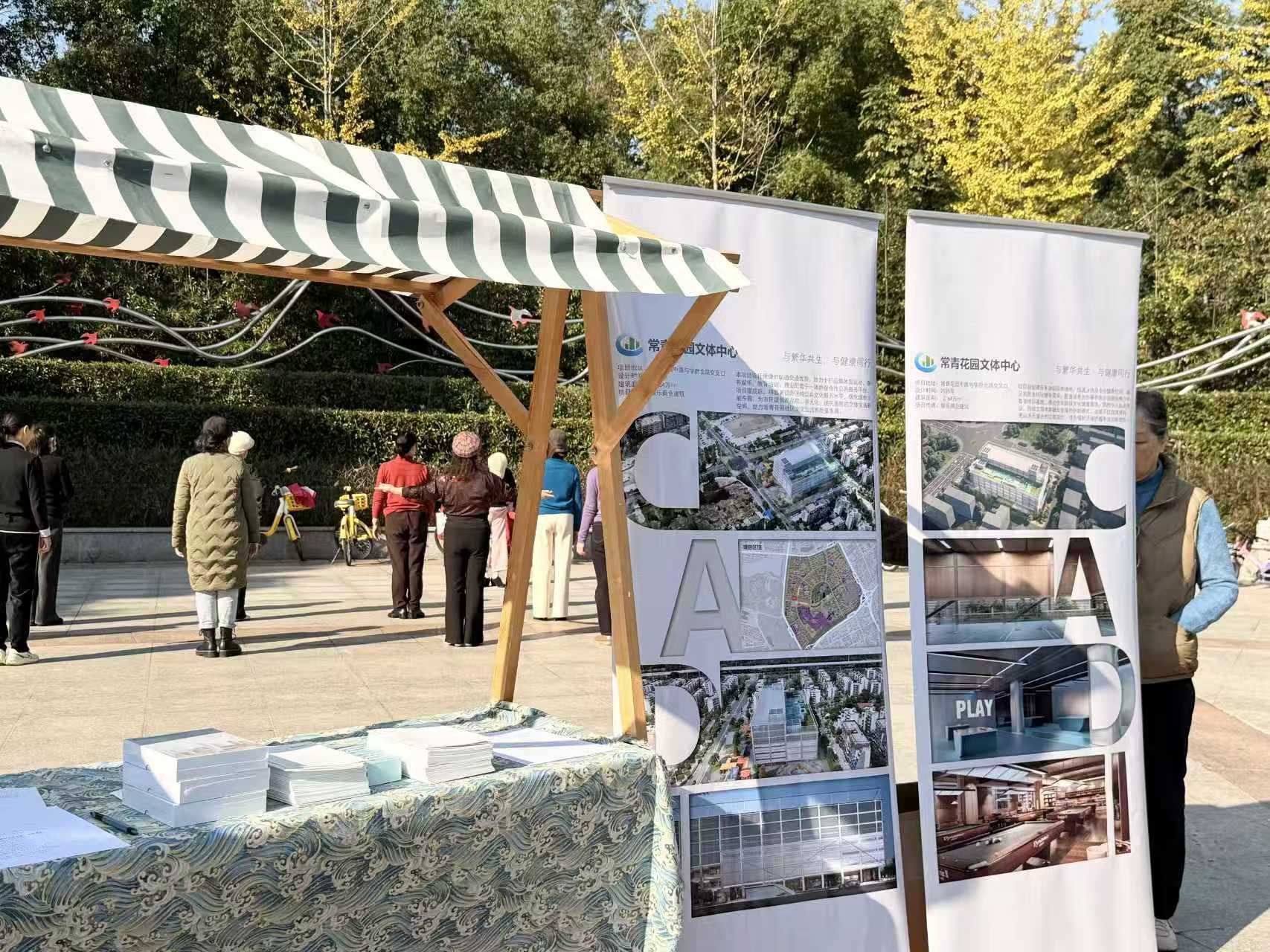 展示区域的2个摊位由城发投集团与设计院联合打造,成为展示常青花园的“未来窗口”。摊位以常青花园7-1文体中心、8-1酒店综合体两大在建项目为核心,通过高清效果图展板、详细规划手册、项目宣传折页直观呈现项目的功能布局、设计理念与建成后的生活场景。现场还特别设置问卷调查互动区,在专业讲解员的一对一解读后,填写对项目建设、功能配套、运营服务等方面的看法与建议,完成问卷即可领取小礼品。这一环节既让居民深入知晓项目对社区品质提升、生活便利化的积极意义,也通过收集民意让社区发展更贴合群众需求,让“共建共治共享”的理念落地生根。