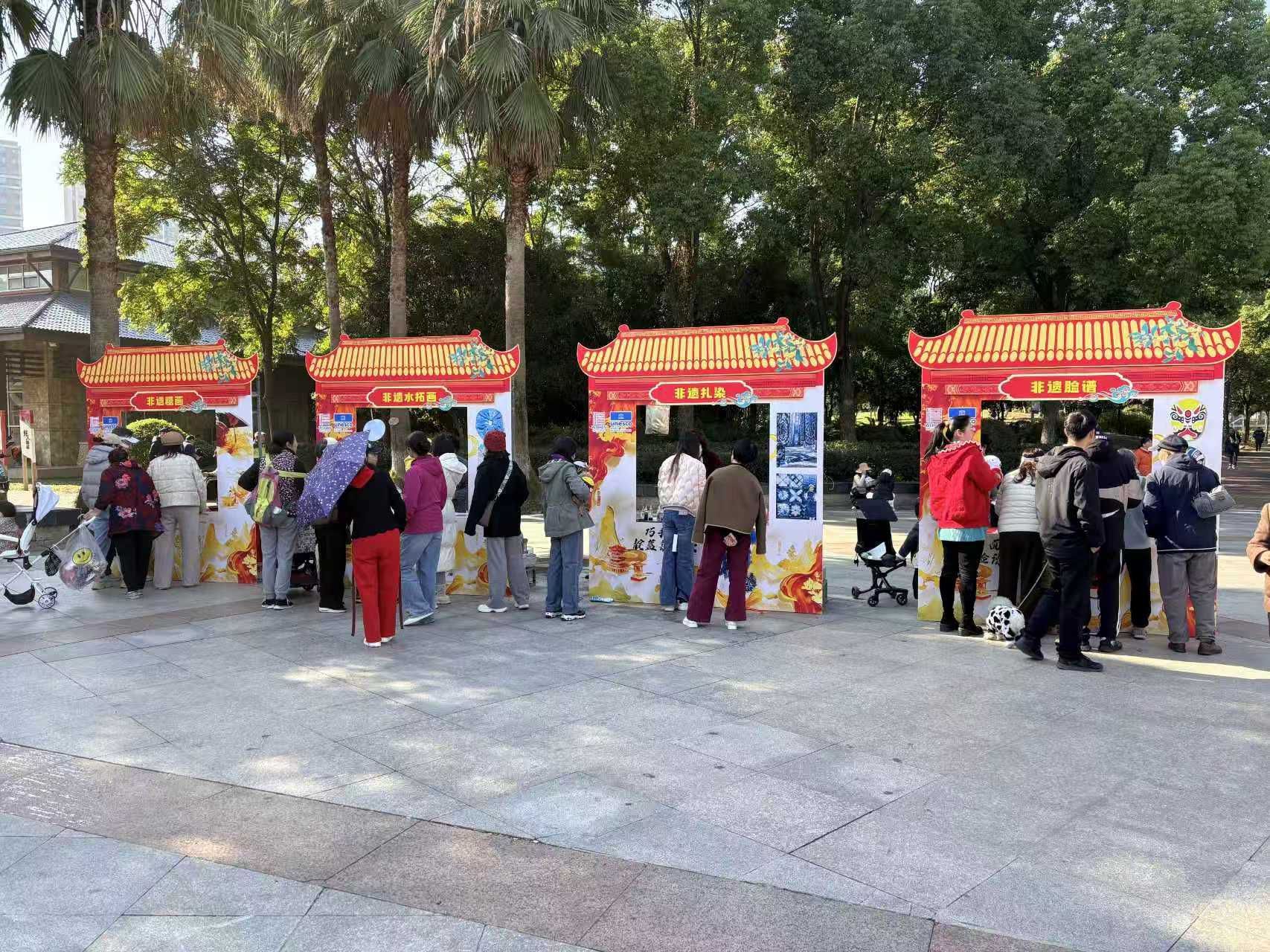 此外,市集还设有非遗主题打卡区与签到处。以非遗纹样、传统技艺元素为灵感的沉浸式布景,古色古香、意蕴悠长,随手一拍皆是国风雅韵,为活动传播增添一抹亮色;签到处工作人员全程在岗,提供咨询指引、流程协助,让每一位参与者都能顺畅体验、舒心沉浸。