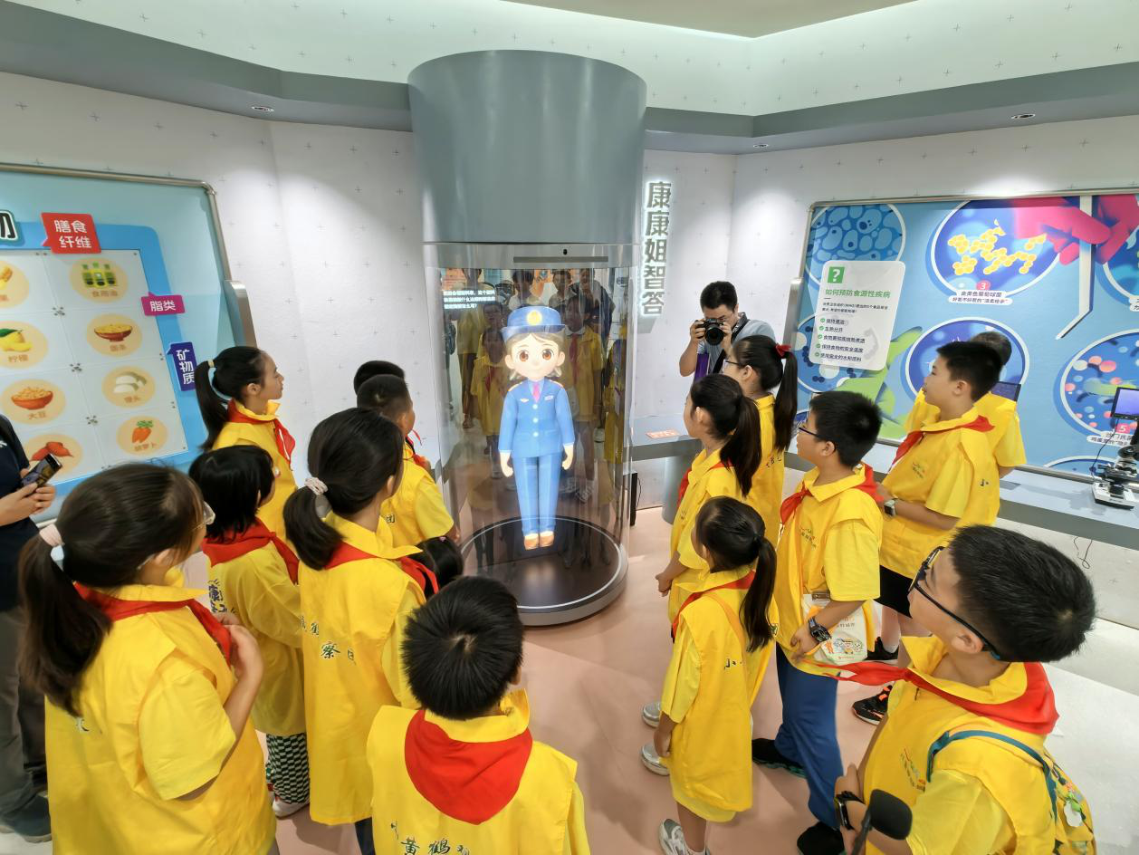 进入第五年,数字化和互动性成为新亮点。在武汉食品安全科普基地展馆内,“康康姐”AI数字人成为孩子们的“智能辅导员”,通过语音交互回答各种食品安全问题。