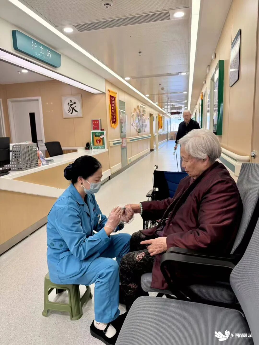 基于这一现实,该院于2022年6月成立医养融合康复服务中心,定位医疗、康复、护理、生活、精神慰藉“五位一体”,主要服务周边有刚性照护需求的老人。