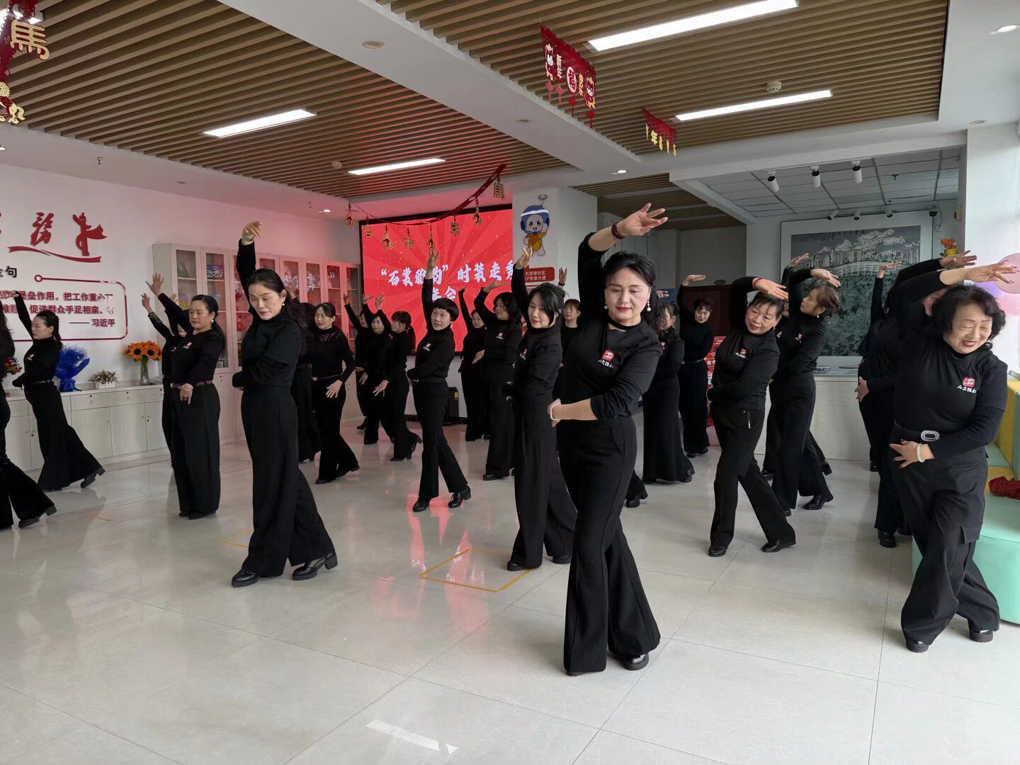 文艺展演环节精彩纷呈,在全体学员的《拉伸队列数码组合》中拉开序幕,独唱、舞蹈、毛扇表演、走秀等节目轮番上演,为现场观众带来了一场视觉与听觉的双重盛宴。《红枣树》《珊瑚颂》等经典曲目唤起温情回忆,《捂不热的心》《苍穹唤》等现代舞蹈极具视觉冲击,充分展现了文艺团队的扎实功底与创作活力。尤为引人注目的是系列走秀节目:《搀扶》传递出邻里间的温情与陪伴,《包包墨镜》演绎出时尚与活力,《精忠报国》彰显出家国情怀,《再唱山歌给党听》则表达了对党的深情礼赞。最后,全场人员齐声高唱《我和我的祖国》,将活动推向高潮,也为本次志愿者年终总结活动画上圆满句号。