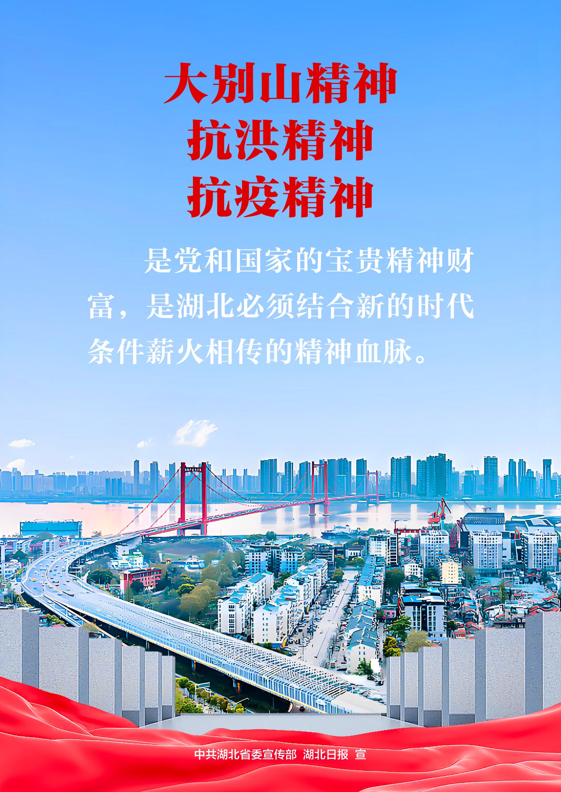 去年深秋,习近平总书记考察湖北时强调,大力弘扬大别山精神、抗洪精神、抗疫精神,广泛践行社会主义核心价值观。这为我们在长江经济带高质量发展中奋勇争先,加快建成中部地区崛起的重要战略支点,奋力谱写中国式现代化湖北篇章,指明了要充分汲取的动力源泉,要广泛汇聚的精神能量。