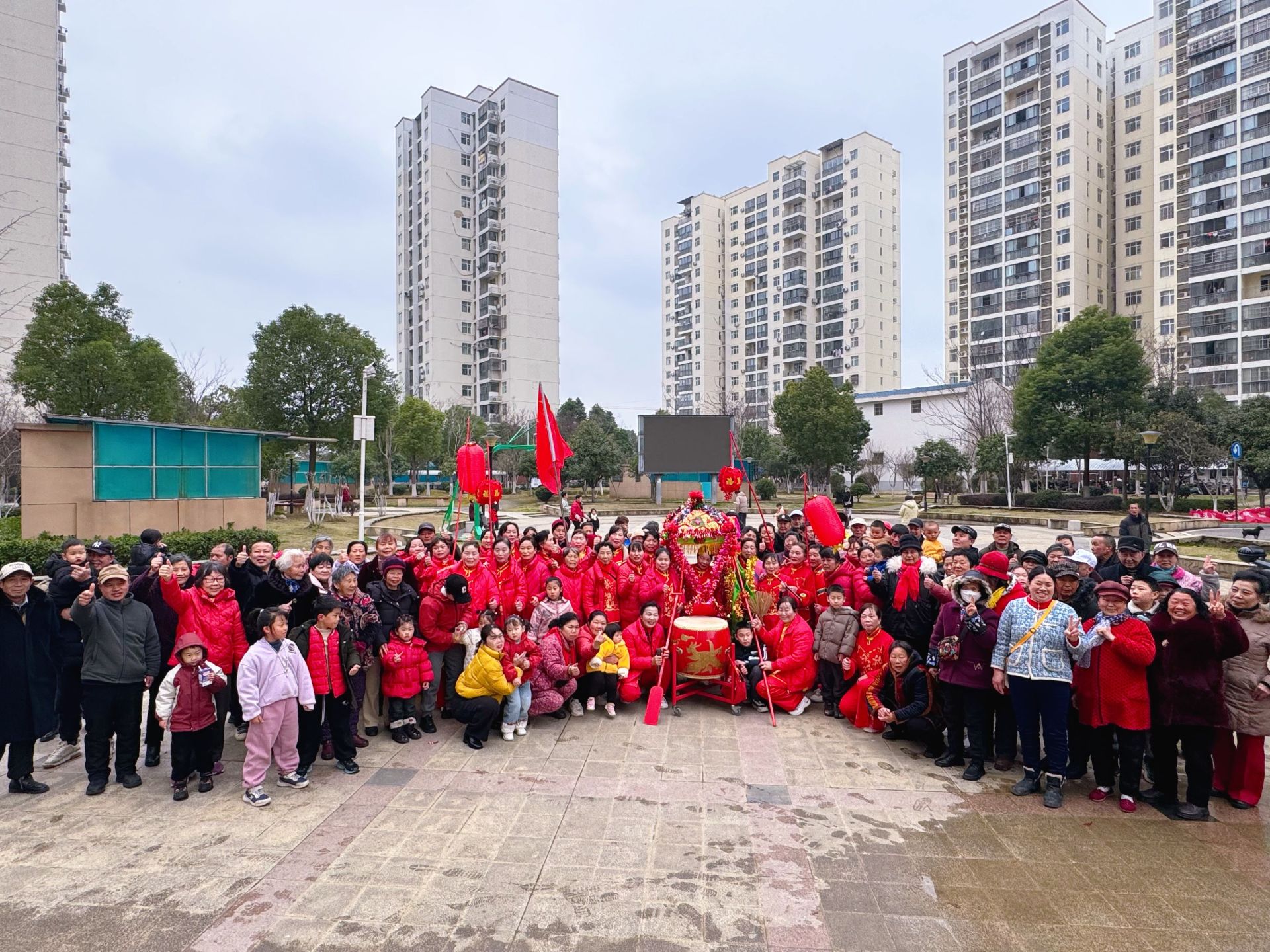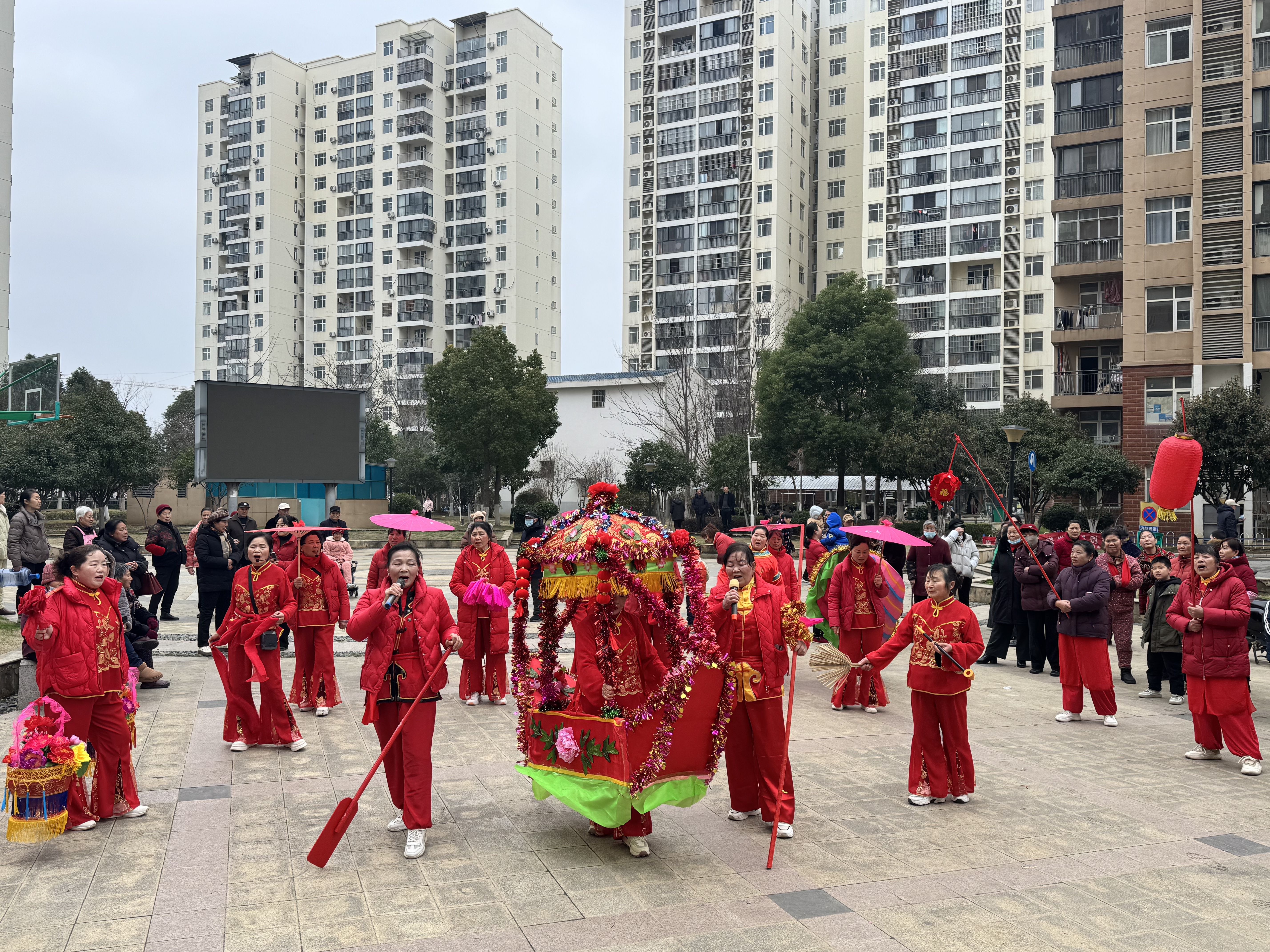 与此同时,稻香苑广场上锣鼓喧天。身着彩衣的表演者们手持旱船道具,迈着轻盈的步伐,灵活穿梭在人群中。旱船在表演者的操控下,时而“乘风破浪”,时而“悠然飘荡”,配合着诙谐幽默的唱词和夸张生动的表情,引得现场观众掌声不断、笑声连连。“这旱船我小时候看过,几十年没见了!”78岁的陈大爷看得入神,跟着节奏拍手。几个小孩好奇地凑上前,被表演者拉着体验了一把“划旱船”,咯咯笑着跌进大人怀里。“社区搞这样的活动真好,大人小孩都有得玩,邻里之间也热络了。”抱着孙子来看热闹的刘阿姨说。