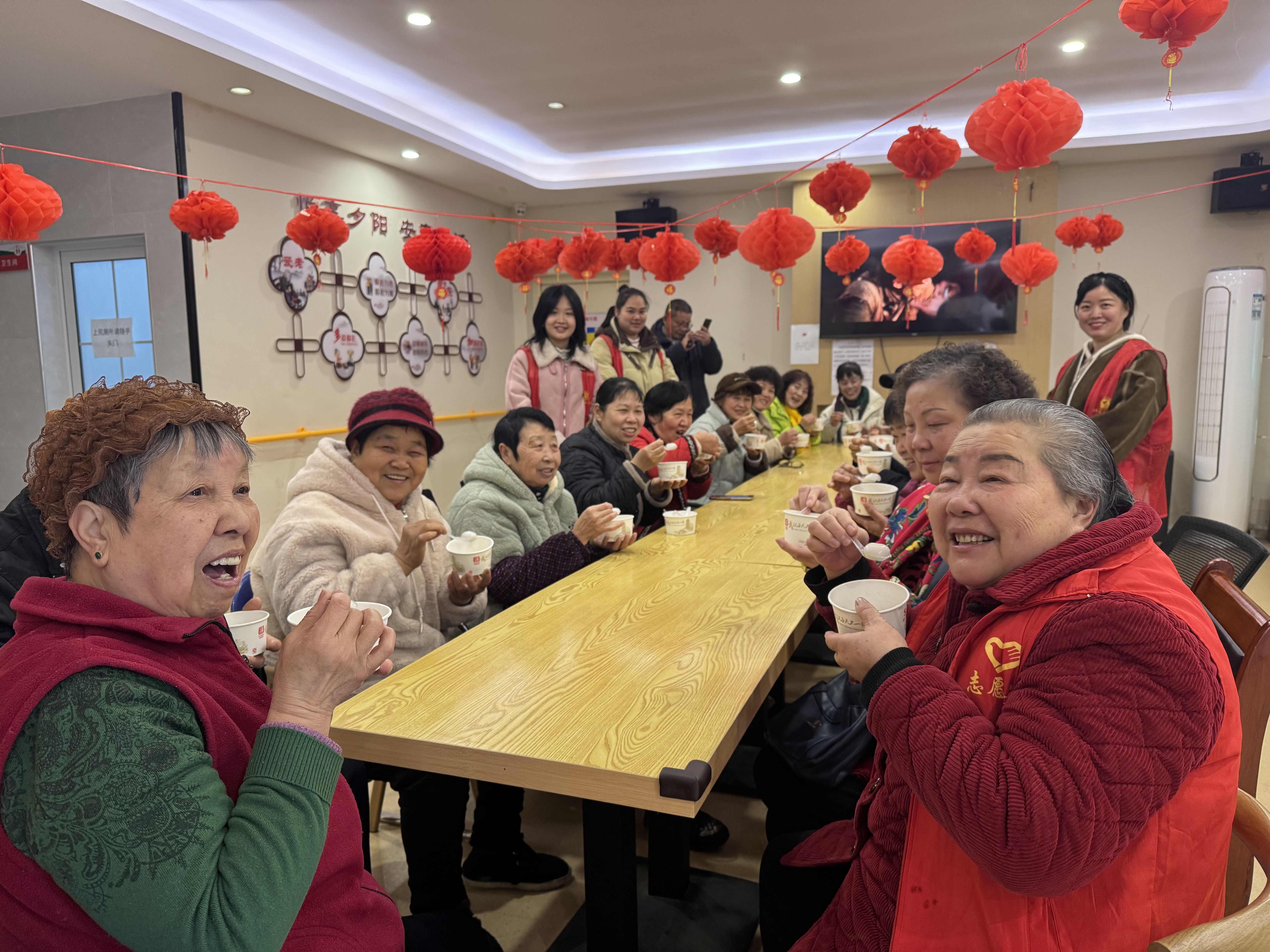 新文明实践站现场张灯结彩,红灯笼、中国结点缀其间,处处洋溢着浓浓的节日气息。包汤圆区域内,怡居乐志愿者提前备好了糯米粉、黑芝麻、豆沙等丰富馅料,桌子一字排开。居民分工协作、默契配合,揉面团、搓汤圆、填馅料,不一会儿,一碗碗热气腾腾的汤圆出锅,大家围坐在一起品尝香甜软糯的汤圆,分享生活趣事。正说着,志愿者们已经打包好一份份汤圆,要送到腿脚不便的老街坊家里。“张奶奶腿不好,下不了楼,咱们给她送去,让她也尝尝这热乎劲儿。”一句句暖心的问候、一张张灿烂的笑脸,让社区这个“大家庭”的温暖在舌尖流淌、在心底蔓延。