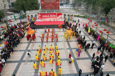 清晨8点30分,新镇社区文化广场已是锣鼓喧天、人头攒动,暖场表演正式拉开活动帷幕。铿锵的锣鼓声奏响新春喜悦,整齐的方阵尽显党群昂扬风貌,早早聚集的观众满怀期待,现场处处洋溢着欢乐祥和的节日氛围。