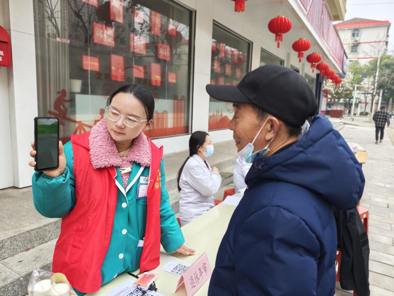 活动现场专设退休年审服务点,志愿者耐心引导居民完成信息核对、材料确认等流程,为行动不便的老人提供全程协助。