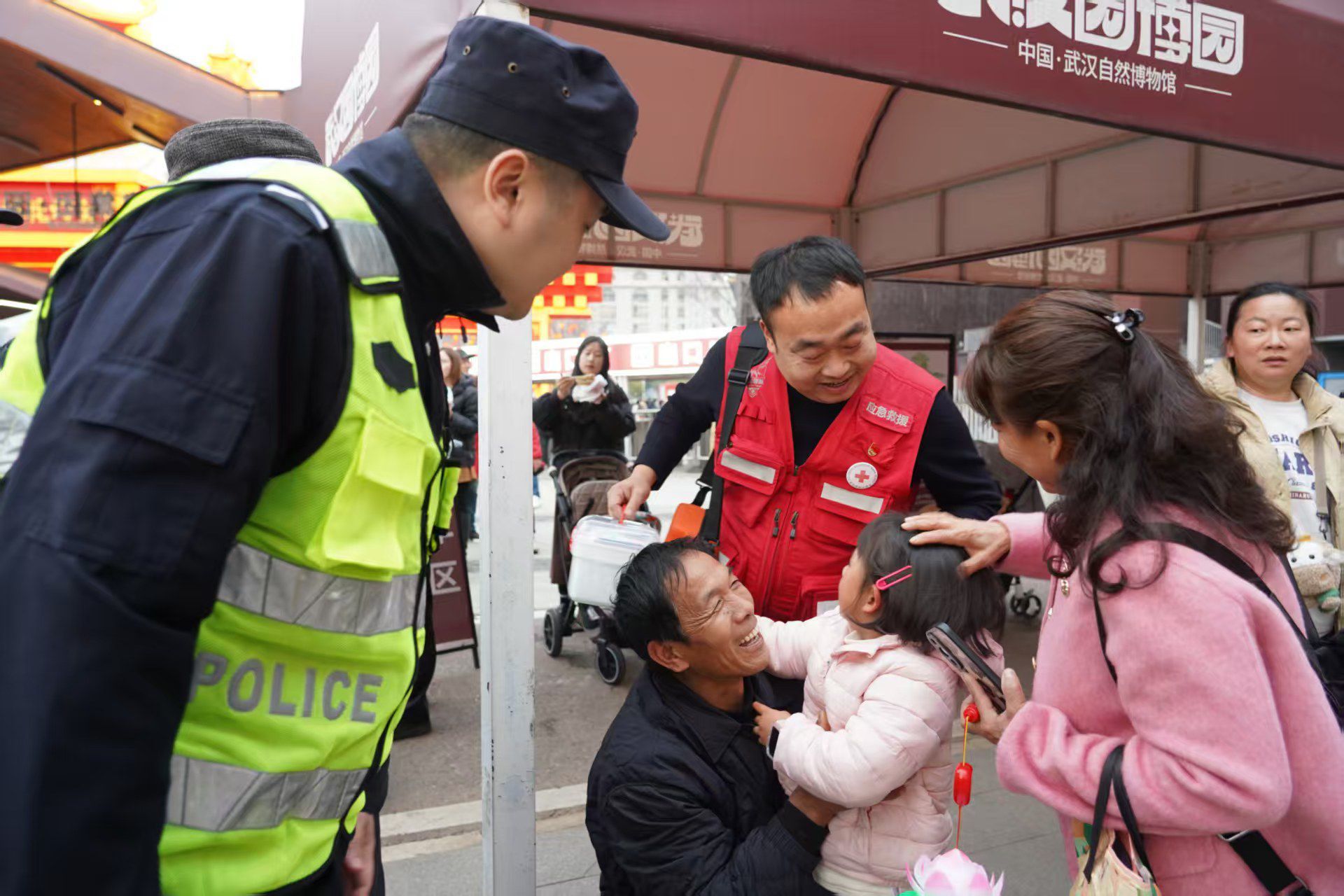 当晚夜市,一名10岁女童不慎被糖葫芦卡住气管,情况万分危急。巡逻至此的治安大队教导员黄海斌发现后,用海姆利希急救法展开施救,最终帮孩子咳出卡在气管里的异物。