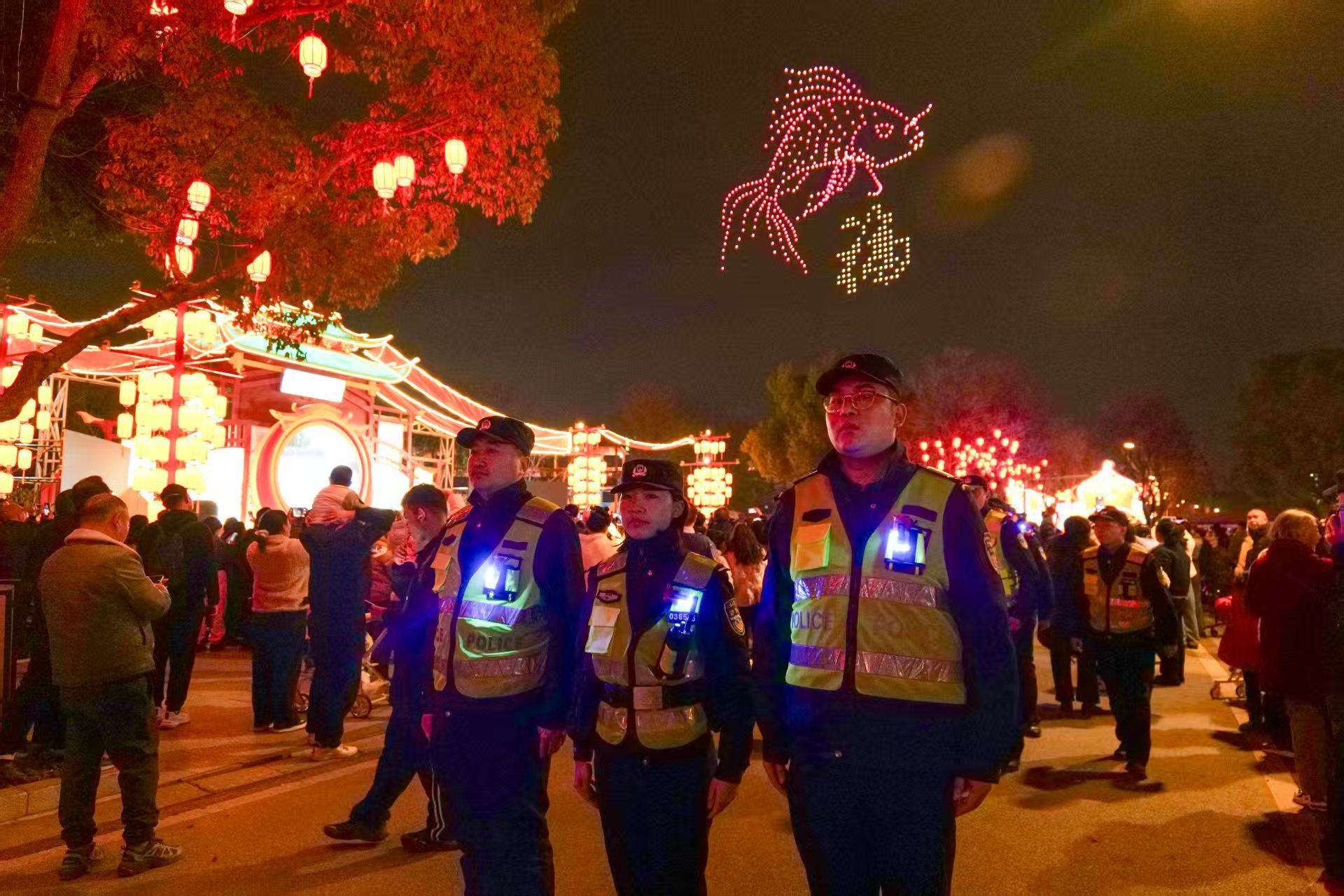 据了解,元宵灯会期间,东西湖公安分局共向景区投入200余名警力,采取“动态巡逻+定点值守”模式,实时开展人流疏导、纠纷调处和安全提醒,随时接受群众报警求助,确保让游客玩得安心。