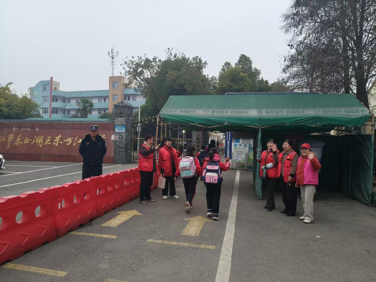 3月4日,春季开学第一天,东方红小学校园门口迎来了返校的学生,新华社区“奶奶护苗志愿服务队”的银发志愿者们也准时到岗,开启新学期的护学服务。这支平均年龄超60岁的志愿队伍,身着统一红马甲,以连续三年无间断的坚守,为孩子们筑牢上学路上的安全防线,成为校园周边最暖心的银发风景线。