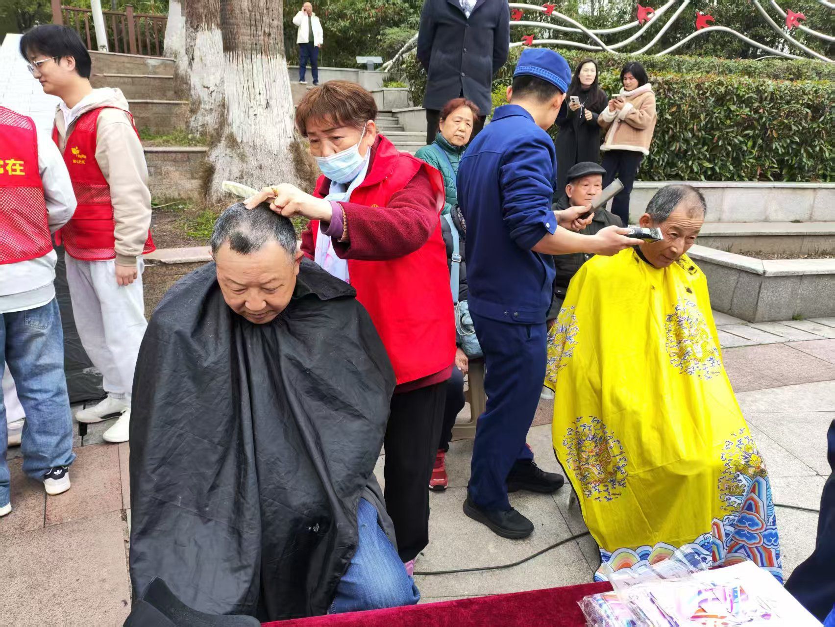 在“志愿服务便民区”,义务理发、家电维修、缝补衣物、修鞋、宠物义诊等一应俱全。“头发剪短了,人也精神了!”刚理完发的张大爷对着镜子满意地点头。不远处,心理咨询、法律咨询、绿化养护知识讲解等摊位也围满了居民,大家交流生活中小妙招,邻里情在互动中悄然升温。