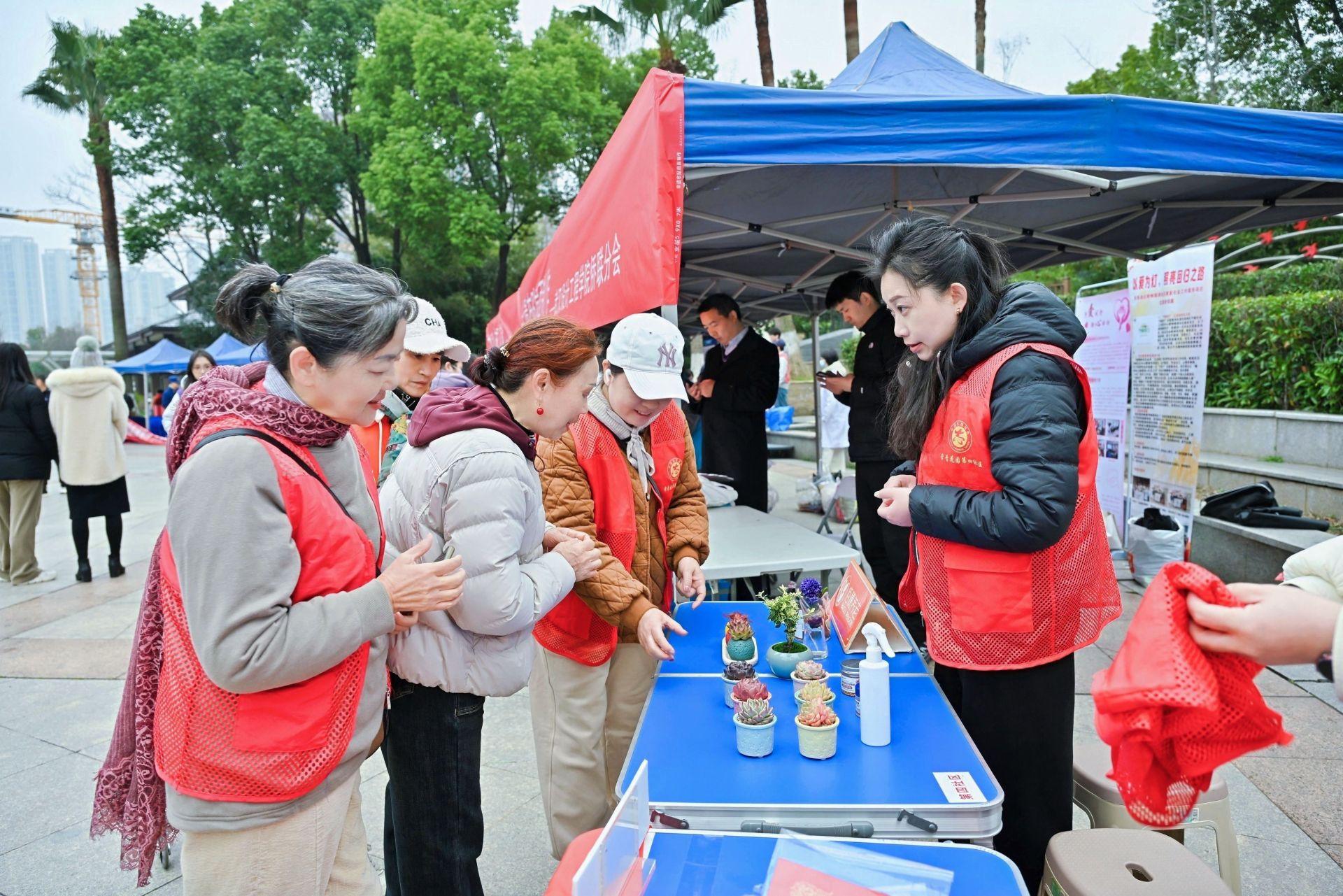 “政策宣传咨询区”同样人气高涨。城管队员通过趣味游戏,向孩子们普及垃圾分类知识,综治队员结合真实案例讲解反诈骗技巧,社工站工作人员则忙着征集社区社会组织孵化项目、招募志愿者。