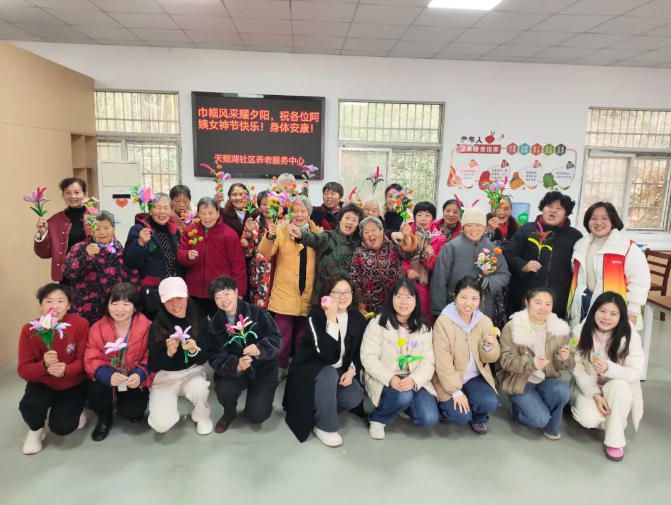 新港苑社区联合老年人服务中心开展“手工传温情,巾帼绽芳华”主题手工活动,邀请辖区数十名女性居民共度节日。活动现场,大家或专注创作,或互相交流,从裁剪、拼接到点缀,每一步都倾注了巧思与心意。平日里忙于家庭与工作的姐妹,在手工创作中舒缓了压力、陶冶了情操。一件件饱含心意的手工作品陆续完成,大家纷纷合影留念,记录下这份属于节日的温馨与美好。