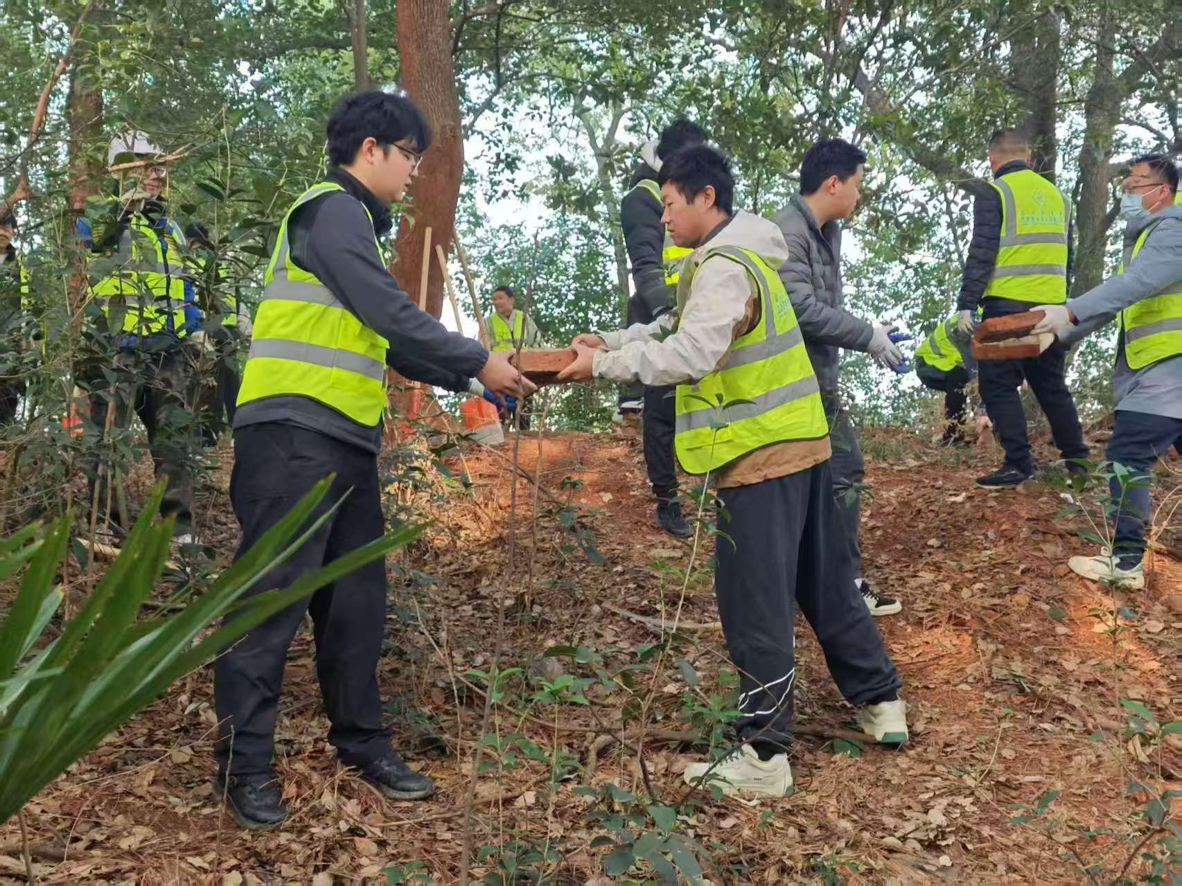 活动现场,大家分工明确、协作默契,充分展现了极强的团队意识。男生或接力将碎石、砖头、枯树枝运送到集中处理处,或手持油锯清除断裂的树枝;女生手持垃圾袋、铁钳等工具,沿着雷达山步道有序推进,仔细清理散落在草丛、石缝、步道旁的塑料瓶、果皮、纸屑等各类垃圾,不放过任何一处卫生死角。有的弯腰捡拾细小杂物,有的合力搬运大件垃圾,有的将垃圾分类整理、集中清运,忙碌的身影成为山间一道靓丽的风景线。