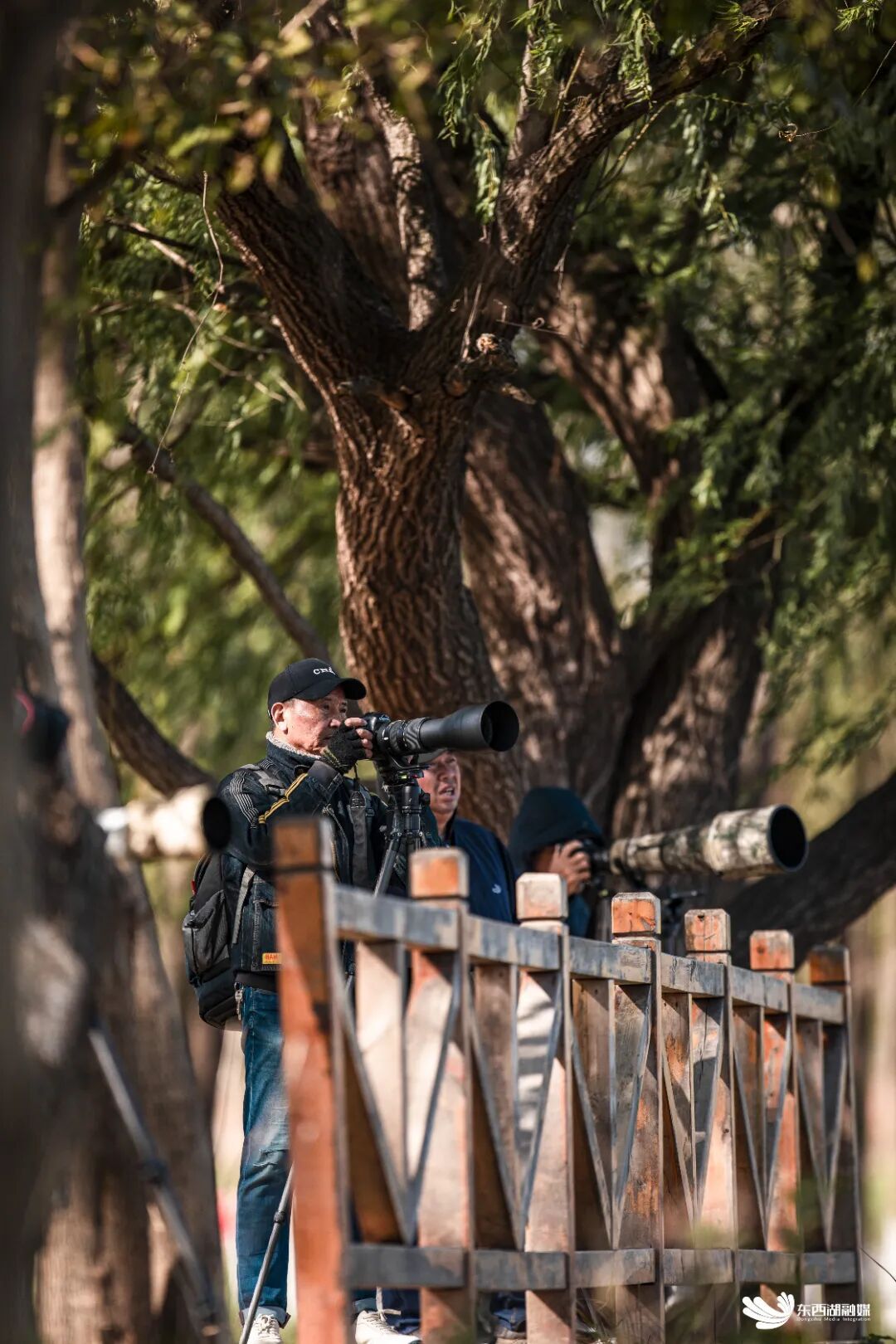 摄影爱好者在府河湿地天鹅湖内拍摄越冬的候鸟。