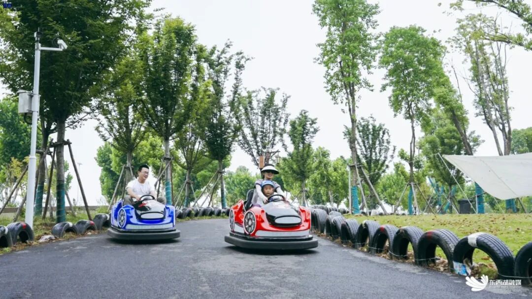 赏花之余,还可以步行或骑行到梧桐雨公园,这里不仅有萌宠乐园、极限泵道、无动力乐园,还可以体验一日农夫,去童话里采摘蔬菜和瓜果,让你在自然中尽情撒欢。玩累了还能去极乐汤泡泡温泉,享受一站式度假体验。