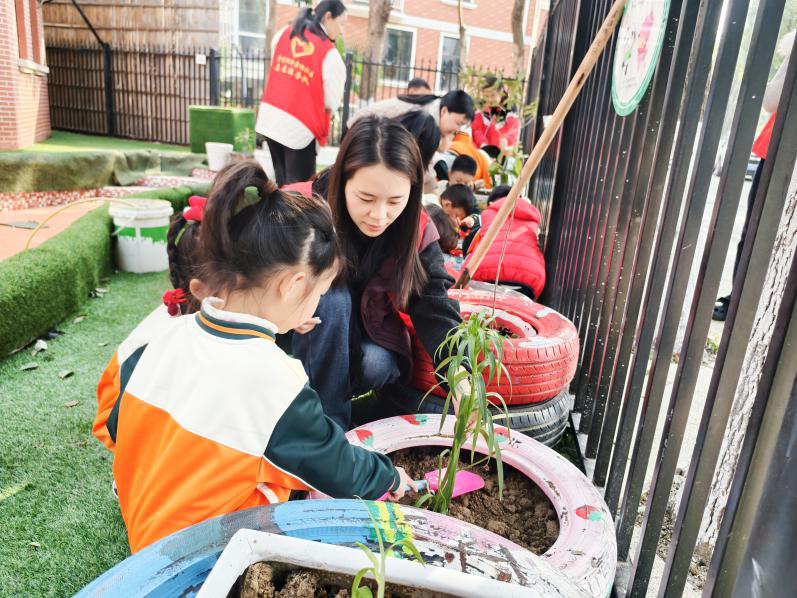 3月12日正值植树节,金银湖街道鑫桥社区、东西湖区彩虹树幼儿园、湖北省颉木景餐饮管理有限公司等单位,当天在彩虹树幼儿园开展植树活动。孩子们巧用废旧轮胎栽种小树苗,在动手实践中收获成长乐趣。