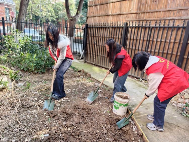 活动现场,鑫桥社区青年志愿者合力将事先准备好的泥土,一铲一锹搬运到空地上,随后仔细清理轮胎“花盆”里的杂质,小心翼翼分填泥土,孩子们化身小小园艺师,栽植小树苗并认真填土、压实、浇水。