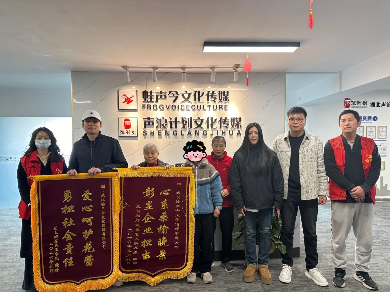 3月13日,来自武汉客厅的空巢老人姜奶奶、地铁时代云上城的残疾儿童家长代表,将四面承载着感激与认可的锦旗,分别送到将军路街杨柳社区与武汉蛙声今文化传媒有限公司手中,以最真挚的方式,回馈社区与企业在前期送来的暖心关怀与帮扶。