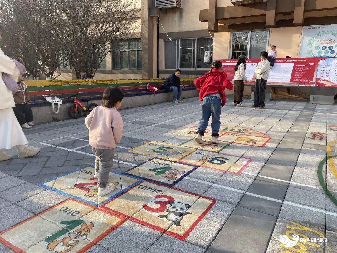 室内欢声笑语,户外同样精彩。配合儿童成长空间开放,社区在入口地面绘制跳房子、趣味迷宫等彩绘图案,打造户外童趣天地。一旁的多功能活动厅内,社区老年文艺队伍正排练合唱,歌声悠扬,与儿童空间的欢笑声交织成趣,呈现全龄共享、其乐融融的社区图景。