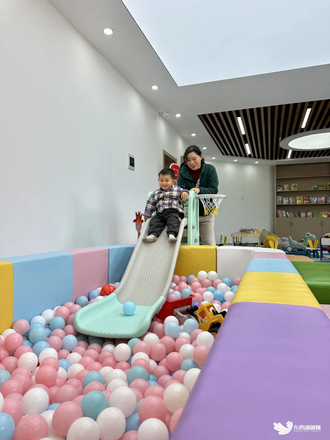 近日,东西湖融媒记者实地探访,发现这处约百平方米的空间内温馨舒适充满童趣。中央活动区铺设安全软质地垫,孩子们在滑梯与海洋球间尽情嬉戏;绘本区书籍整齐陈列,小桌椅布置得井然有序,为低龄儿童打造沉浸式阅读角落;运动区则配有篮球架、足球门等器材,满足孩子跑跳活动的需要。空间内还点缀着各式玩具与益智教具,整体布置贴心安全,成为社区里的“迷你儿童乐园”。
