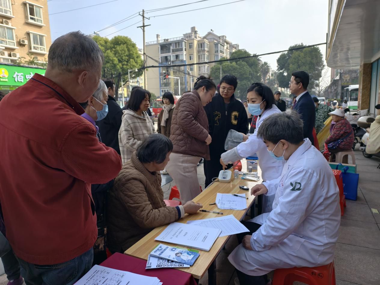 来自东西湖区第二人民医院的医护志愿者一边为居民测量血压血糖,一边针对春季多发病进行健康指导。现场还设置了慢性病咨询台,为30余名居民建立健康档案,让老人在家门口享受“一站式”健康服务。