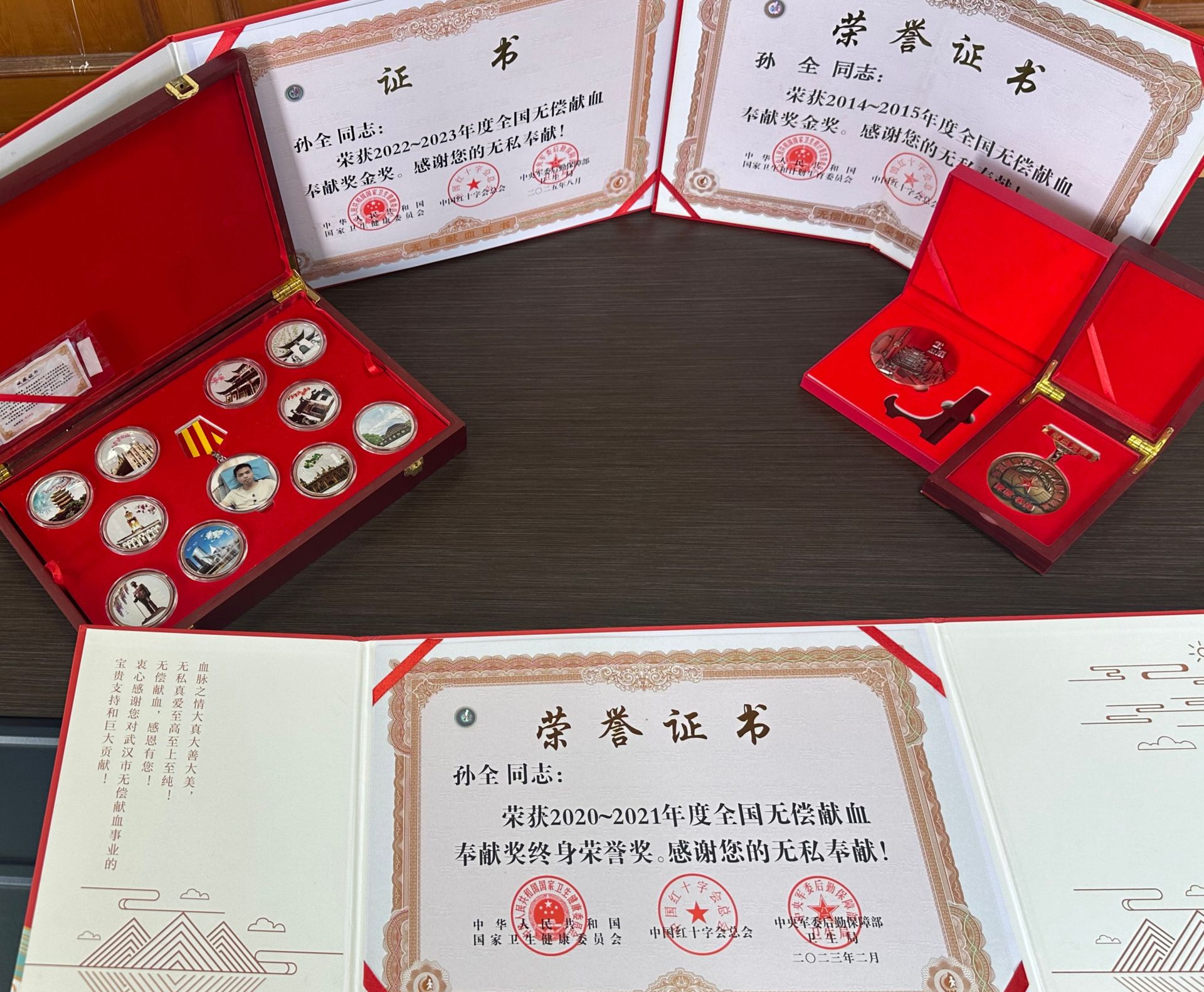 十三年时间,孙全献全血8次、成分血126次总计捐献134次,先后荣获成分献血达人、全国无偿献血奉献奖金奖、终身荣誉奖等荣誉。他还主动加入中华骨髓库,时刻准备捐献造血干细胞,没有惊天动地的壮举,一日复一日地坚持,持续传承“雷锋精神”,展现着基层工作人员的担当与情怀。