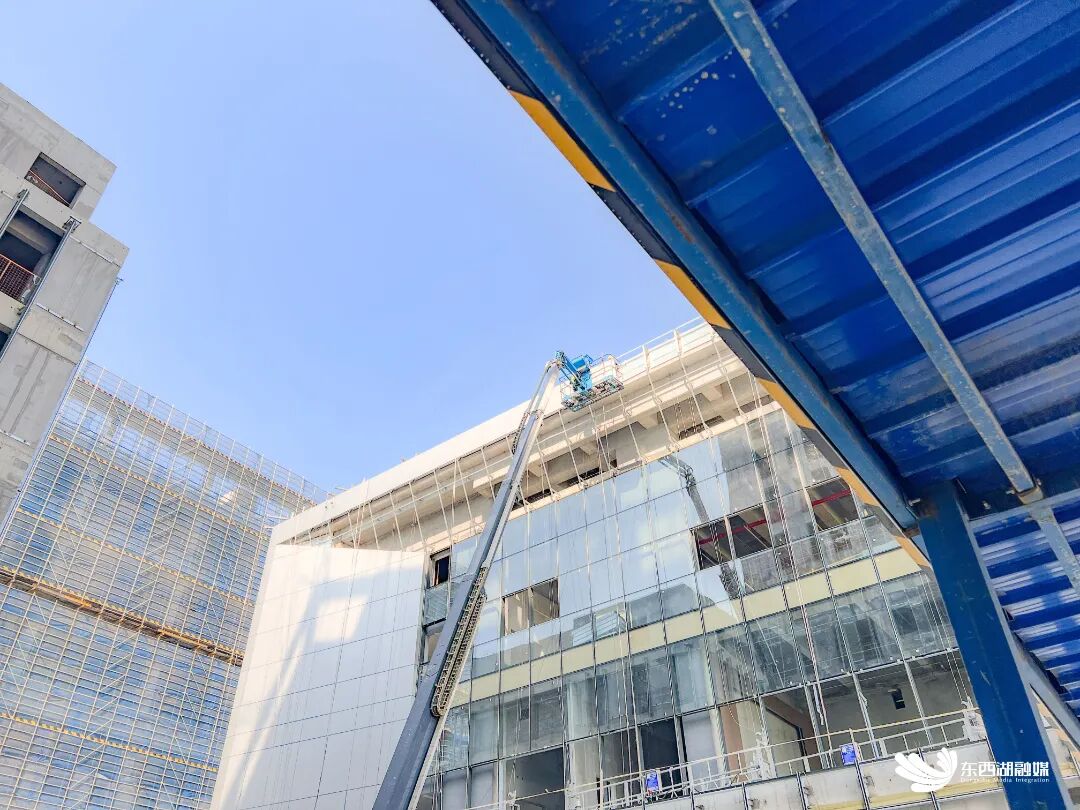 近日,东西湖融媒记者走进项目现场,只见塔吊林立,机器轰鸣,300余名建设者正抢抓春日晴好天气加紧施工。在已完成主体结构的6号楼,工人们正对外墙进行玻璃幕墙龙骨安装,室内同步推进管线铺设与墙面处理,各道工序紧密衔接,现场一派繁忙有序的建设景象。