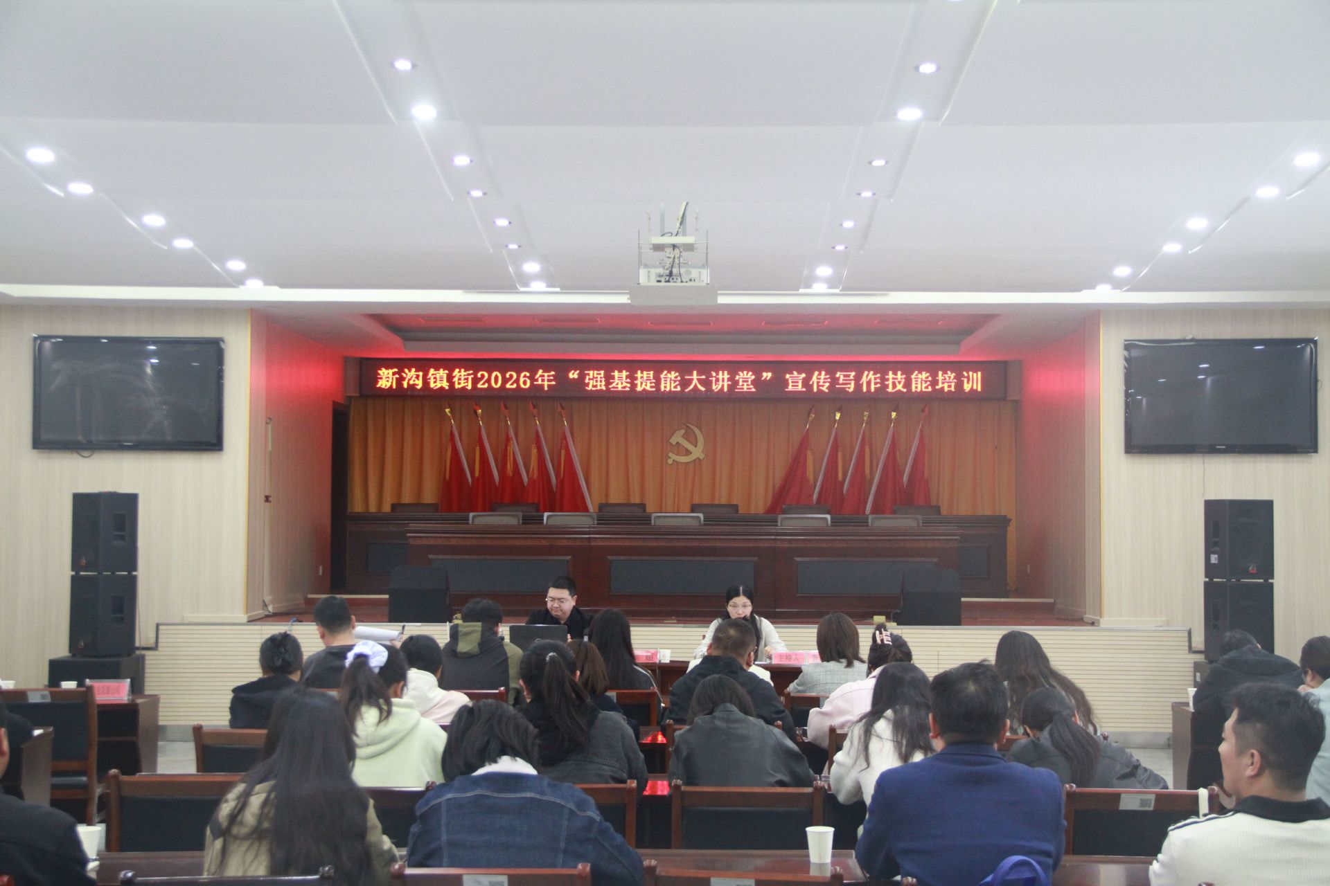 为深入贯彻省委深化拓展“干部素质提升年”部署要求,切实提升新沟镇街宣传队伍专业素养和业务能力,夯实基层宣传工作根基,4月1日下午,新沟镇街2026年“强基提能大讲堂”宣传写作技能培训顺利举办。机关各科室、农场各部门、各社区、各单位及场属二级企业宣传工作骨干约70人参加本次培训。