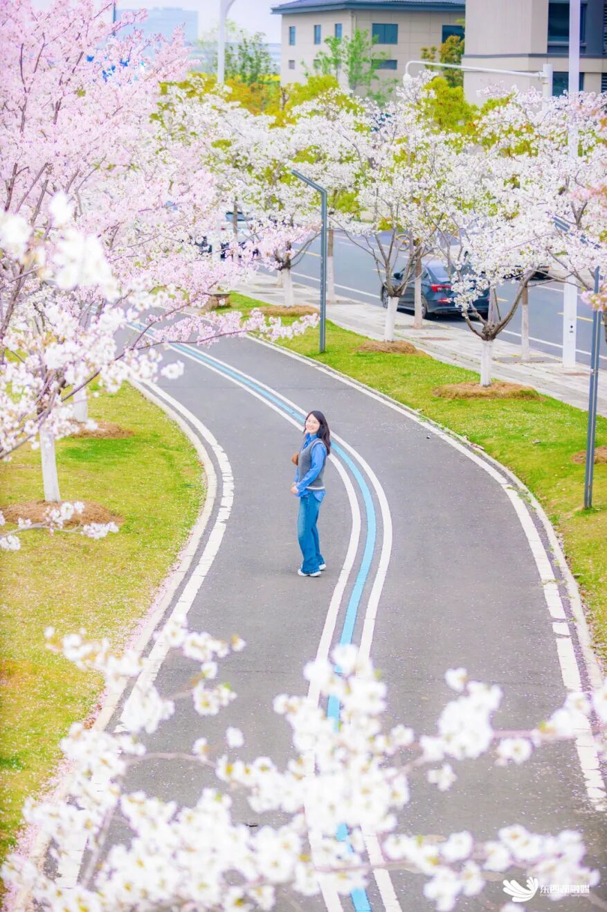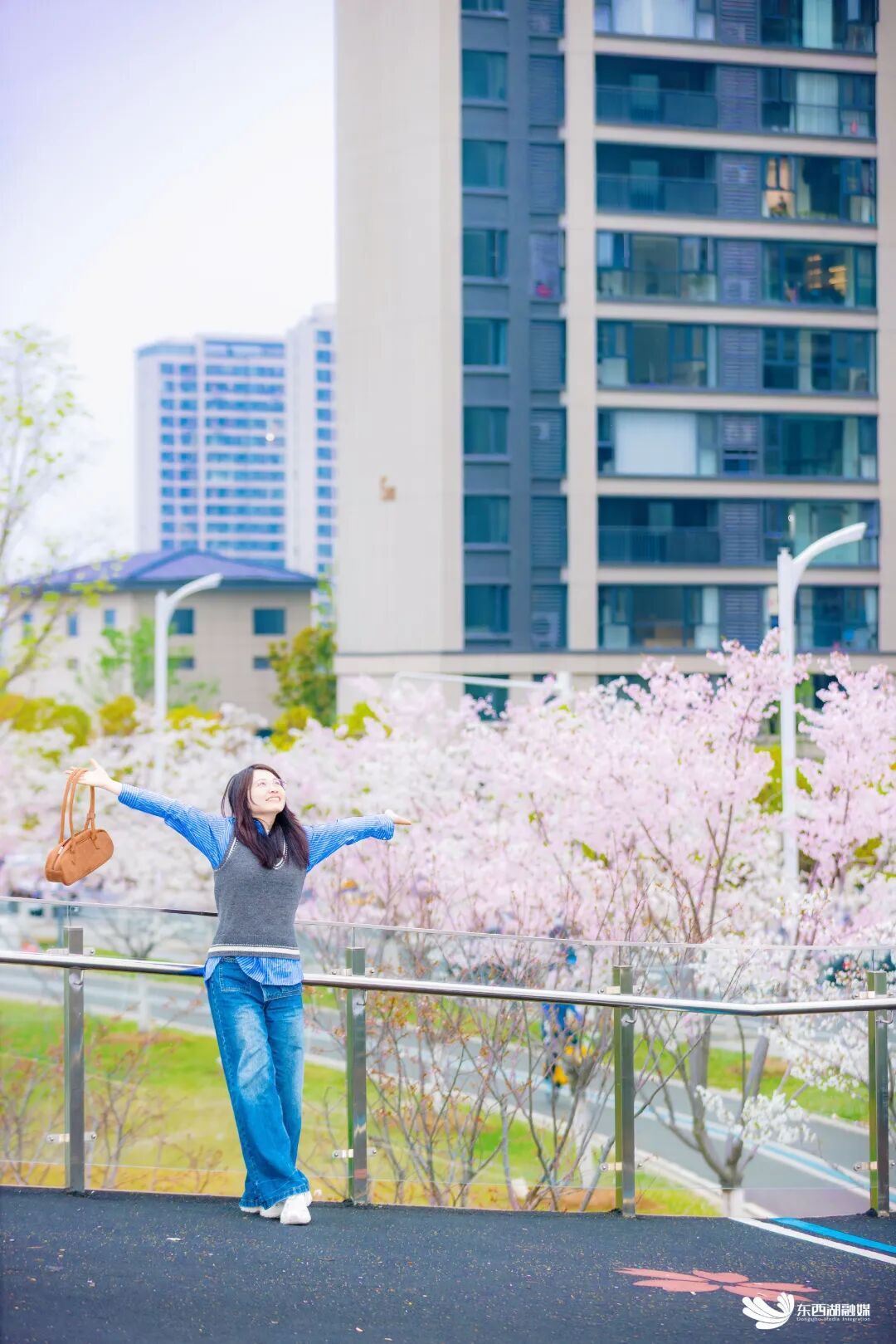 从樱花溪步行就能到临空港文化中心,这片凭借纯白建筑群和干净几何线条出圈的空间,早就是社交平台上的热门打卡地。整片建筑依缓坡舒展,大面积落地玻璃在晴日里捕捉光影流动,一步一景,随手就能拍出氛围感大片。“刷到好多博主发这里,早就想来拍一组生日写真——今天自己来了,真的超出片!”刚换完拍摄场景的大学生林晓擦着汗告诉记者。