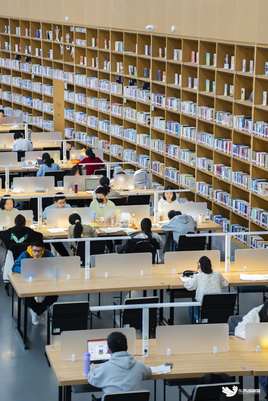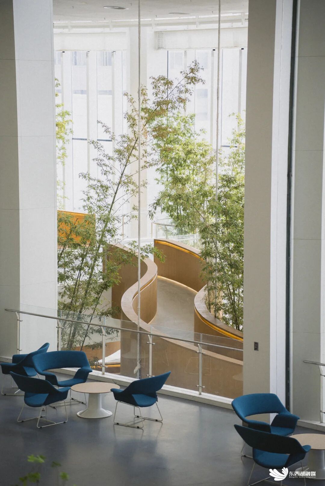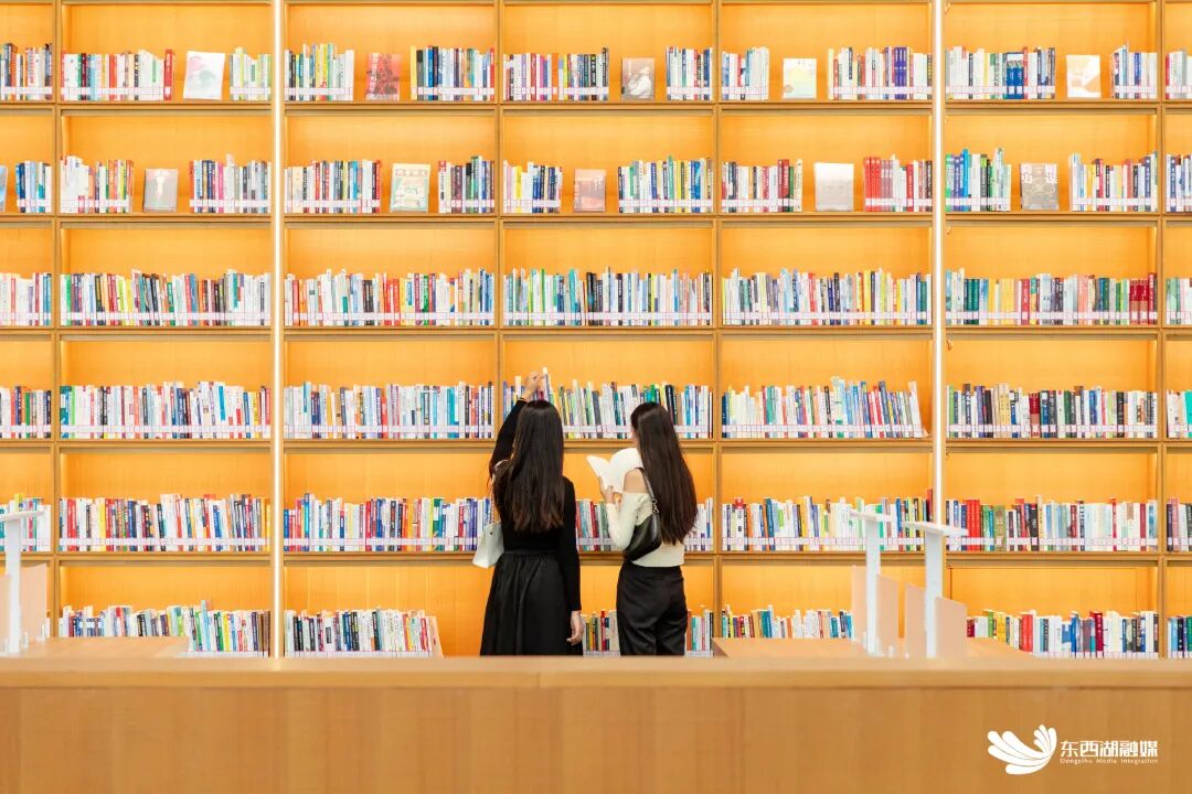 图书馆里整面书墙静立,临溪的窗边观景座每逢周末早早满员,有人陪孩子读绘本,也有人独自捧书静坐一下午,闹中取静的安逸,正好消解上午逛玩的疲惫。