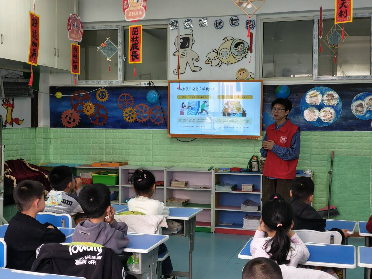 安全科普环节,志愿者结合幼儿生活场景,以情景模拟、趣味讲解揭秘电信诈骗常见套路,带领孩子们牢记“陌生电话不轻信、陌生短信不点链、谈到转钱挂掉它、遇到问题找爸妈”的反诈口诀。同时,通过动手制作通信安全知识卡,让孩子们在实践中巩固知识,鼓励大家化身家庭反诈小宣传员,将安全知识传递给家人。