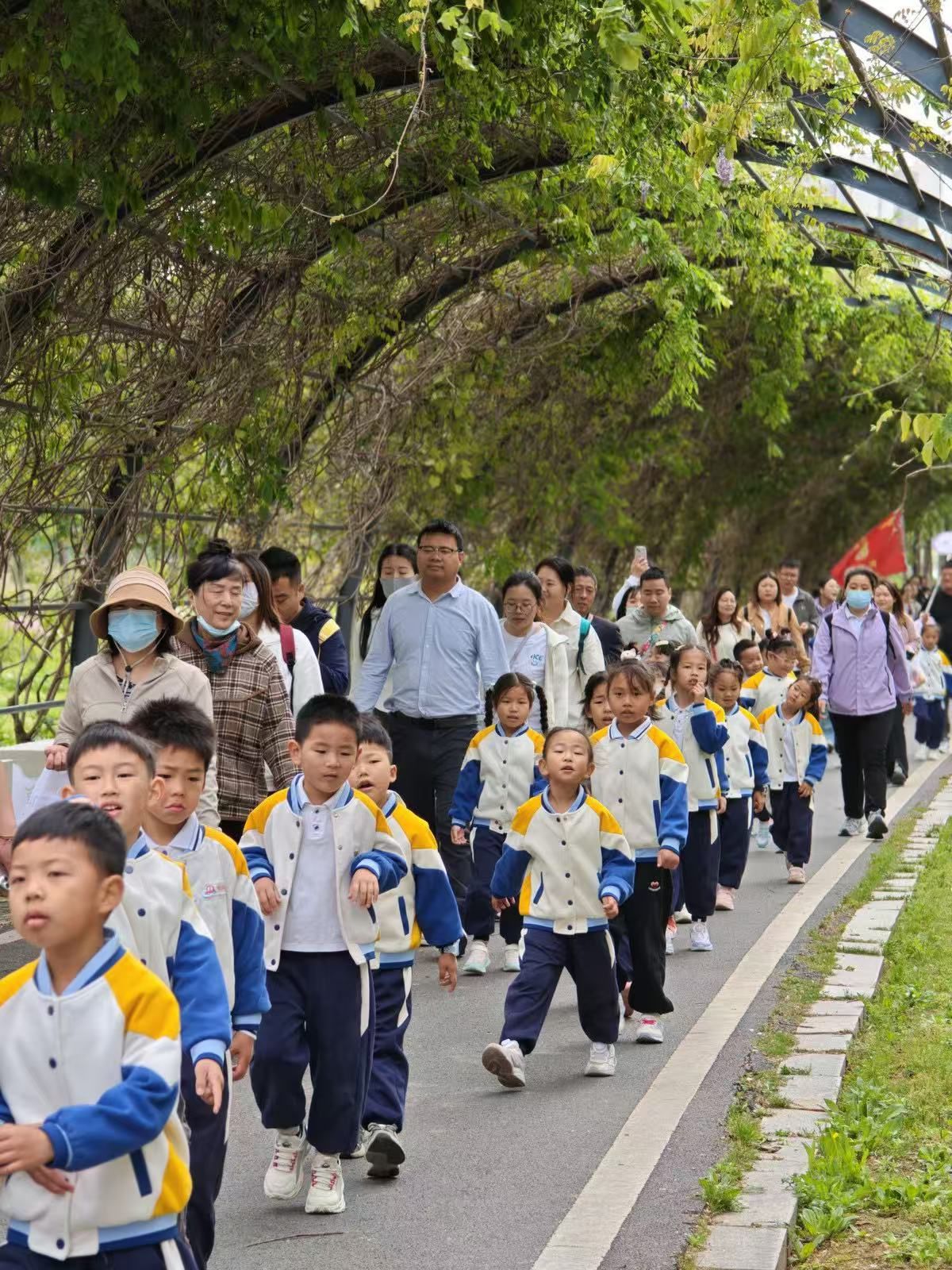 孩子们在家长陪伴下,大手牵小手,并肩漫步湖畔步道,沿湖而行,观察草木萌发、聆听鸟语虫鸣。沿途设置自然科普互动点,教师和社区志愿者讲解植物特性、生态知识,让孩子们在行走中学习,在体验中思考。