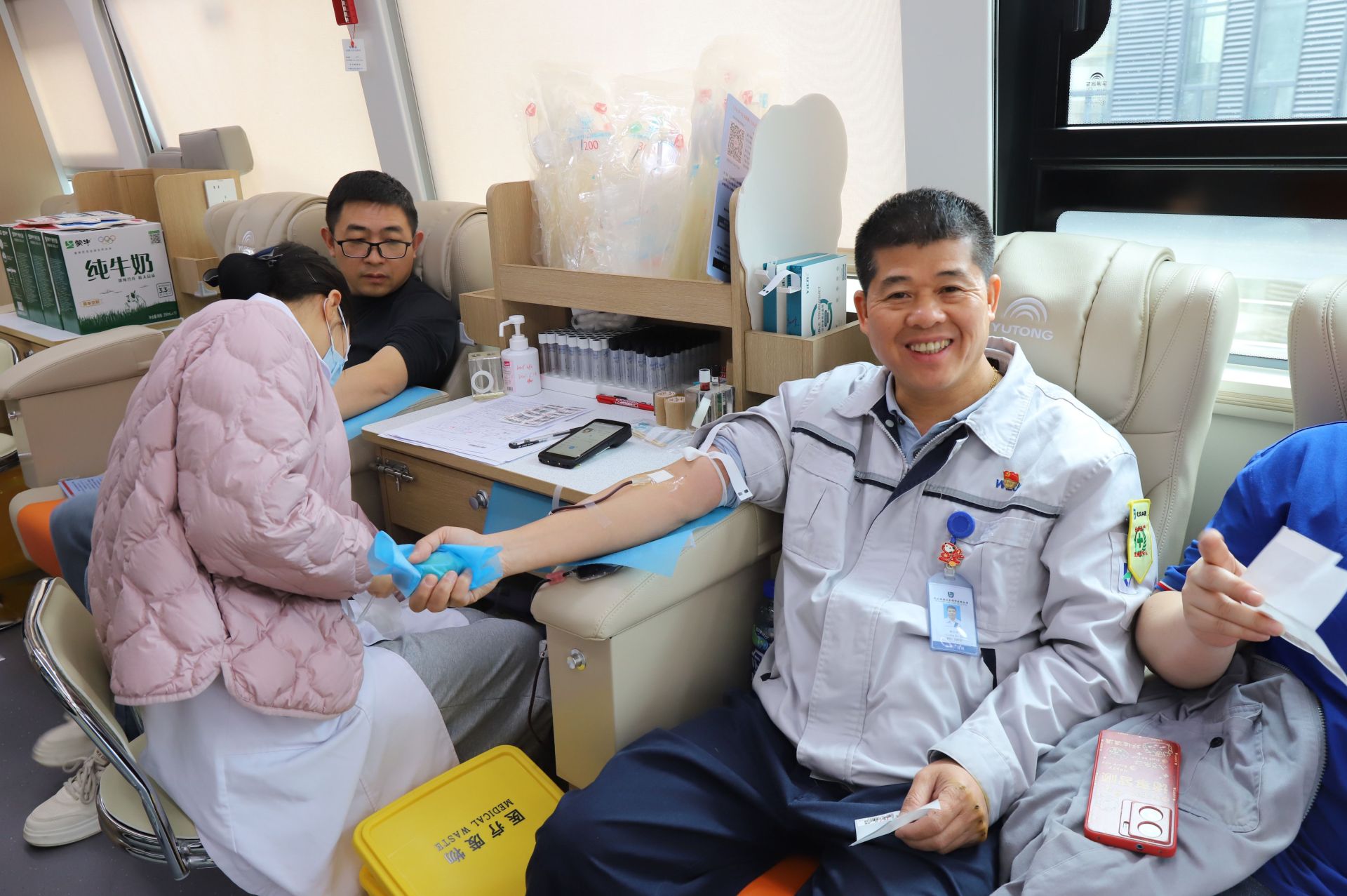 社区志愿者们主动靠前、全程服务,在现场引导职工有序排队、协助填写献血表格、发放献血纪念品,为献血职工递上温水、零食补充能量,有效保障了整个献血活动高效、有序推进。献血职工们个个精神饱满、笑容坚定,挽起衣袖、伸出手臂,用一袋袋热血传递爱心,用实际行动诠释着企业职工的责任与担当。