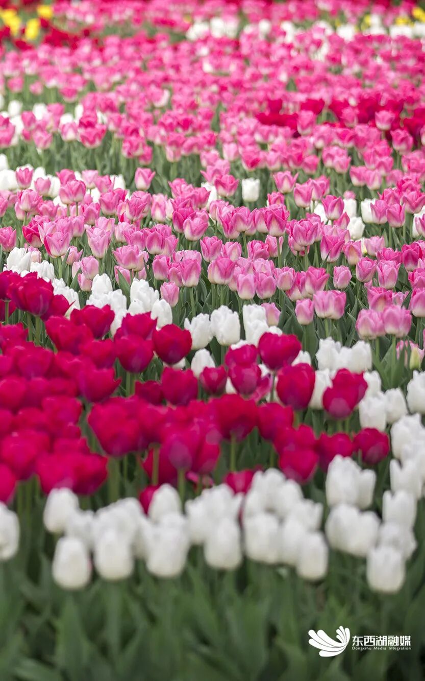 东西湖郁金香主题公园“百万郁金香主题花展”2月26日开放迎客,集纳60个品种共150万株郁金香。花展用黄鹤楼、雷神山、火神山、长江水等造型致敬英雄城市、英雄人民。此外,公园还用10000株红色郁金香织成党徽图案,喜迎建党100周年。